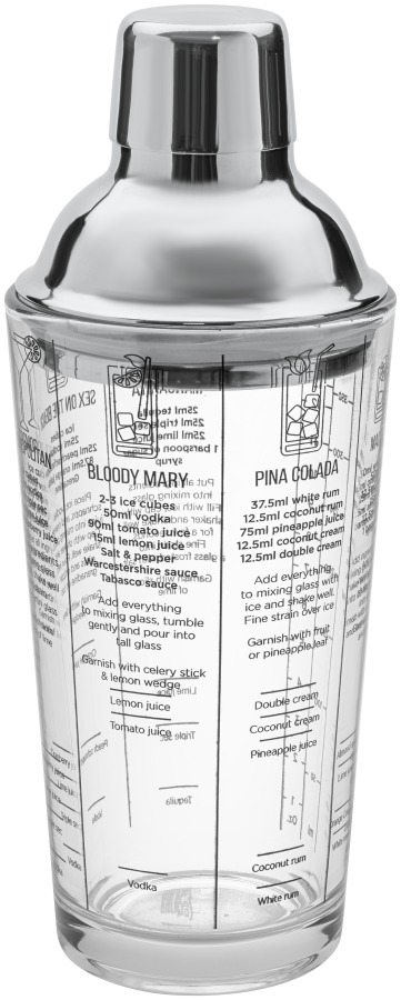 Шейкер предназначен для приготовления коктейлей и других напитков. Шейкер имеет удобную мерную шкалу и снабжен ситечком для фильтрации. Материалы изготовления: стекло, нержавеющая сталь, силикон. Высо... Показать описаниета стакана: 22 см. Объем 450 мл