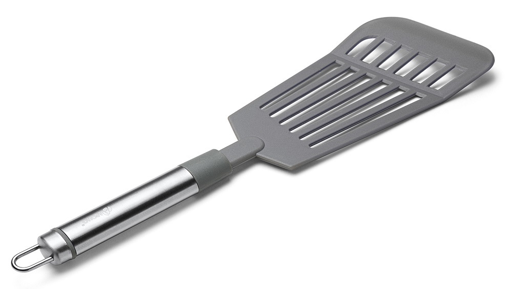Лопатка изготовлена из пищевого пластика и выдерживает температуру до 180?. Лопатка предназначена для перемешивания и переворачивания продуктов в процессе жарки или тушения, а также подачи готовых блю... Показать описаниед. Прорези на лопатке позволяют стекать излишкам масла, соуса или жидкостей. Изделие прекрасно подойдет для посуды с антипригарным, тефлоновым или керамическим покрытием. Лопатка имеет петлю для подвешивания в любое место на кухне. Материал изготовления: нержавеющая сталь 410, пищевой пластик PP, нейлон.