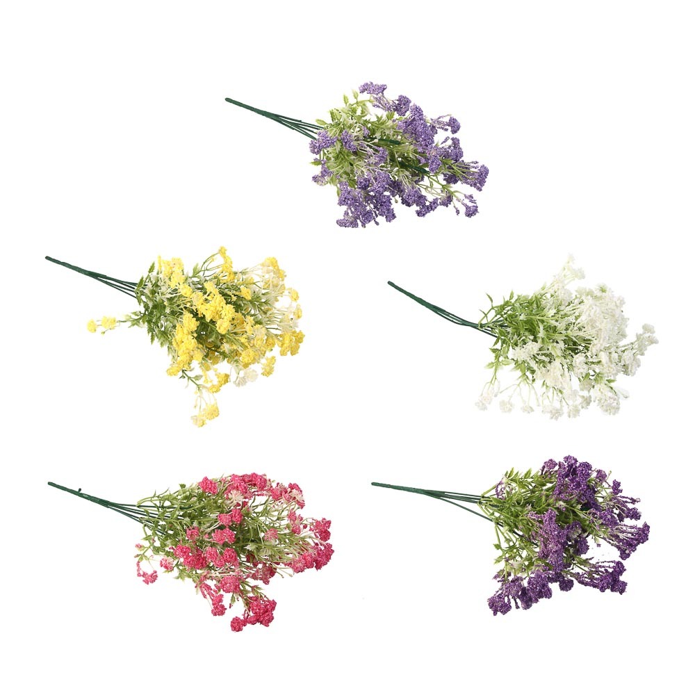 Изысканный букет искусственных цветов LADECOR станет настоящим украшением вашего интерьера. Нежная композиция из пяти изящных веточек, достигающих в высоту 33-35 сантиметров, создаст атмосферу свежест... Показать описаниеи и уюта в любом помещении. Благодаря компактным размерам букет прекрасно впишется как в небольшой интерьер, так и станет ярким акцентом в просторном помещении. Гибкая конструкция на проволочном каркасе позволяет легко формировать желаемую композицию, подстраивая её под ваш вкус и стиль оформления. Высококачественный пластик обеспечивает реалистичный внешний вид каждого цветочка и листочка, а также долговечность изделия. Букет не требует полива, не выцветает на солнце и сохраняет свою привлекательность на протяжении долгого времени.