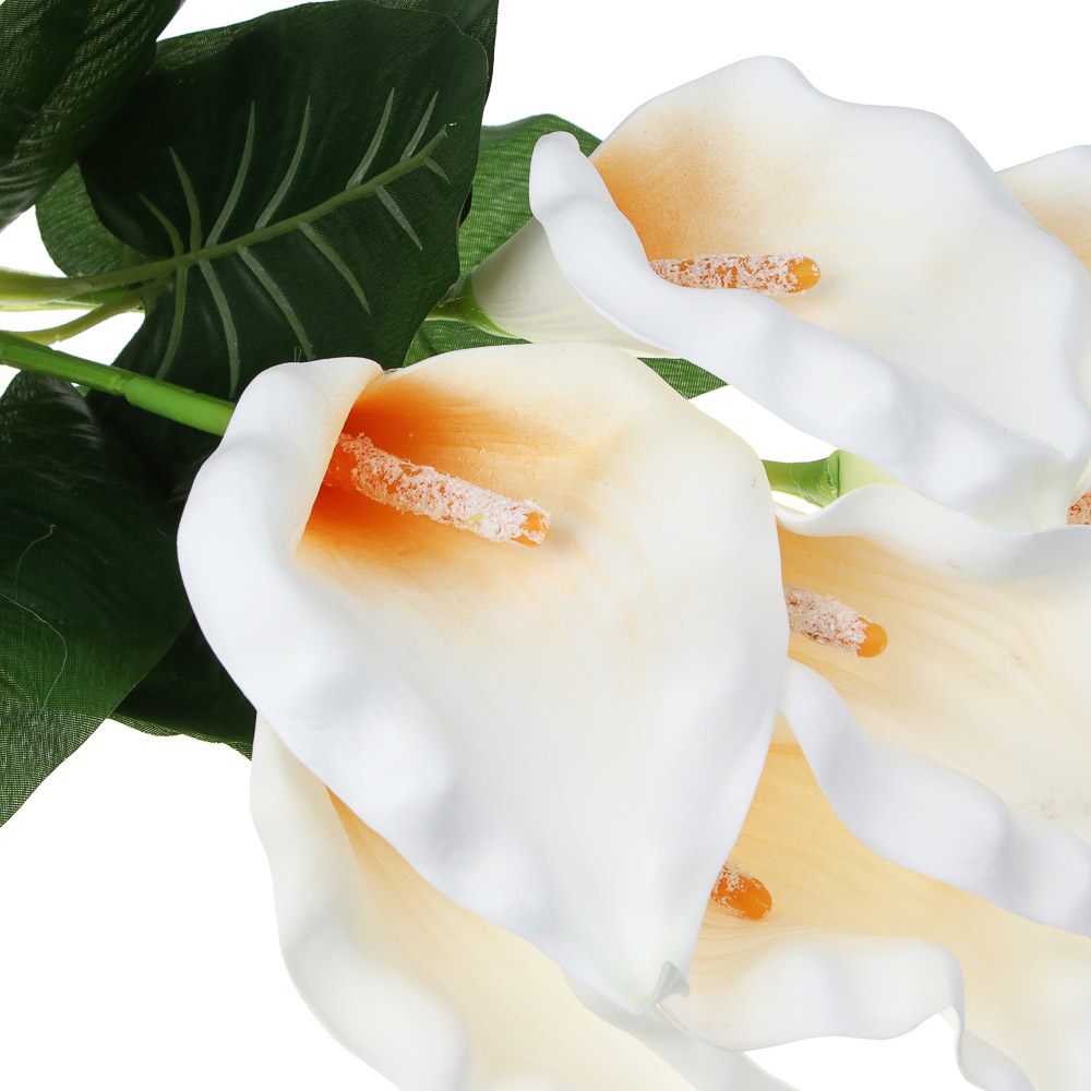 Искусственные каллы LADECOR – это воплощение элегантности и изысканной простоты, идеально подходящее для создания торжественной, утонченной или спокойной атмосферы в любом интерьере. Букет длиной 60 с... Показать описанием состоит из нескольких крупных цветков с плавно изогнутыми белыми лепестками, имитирующими натуральную текстуру благодаря сочетанию ткани, ЭВА и пластика. Такие каллы не требуют ухода, не вянут, не боятся солнца или влаги и сохраняют свою первозданную красоту годами. Их чистый белый цвет символизирует чистоту, покой и уважение, делая их идеальным выбором для оформления свадеб, Пасхи, домашнего декора или как достойного элемента в оформлении мест памяти.