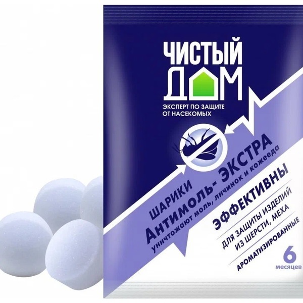 Бренд: Чистый дом Серия: - Материал: См. на упаковке ШтрихКод: 4601826005154 Страна происхождения: Китай Шарики Антимоль Экстра уничтожают моль и личинки. Два-три шарика достаточно для защиты от повре... Показать описаниеждений молью в одной секции стандартного платяного шкафа.