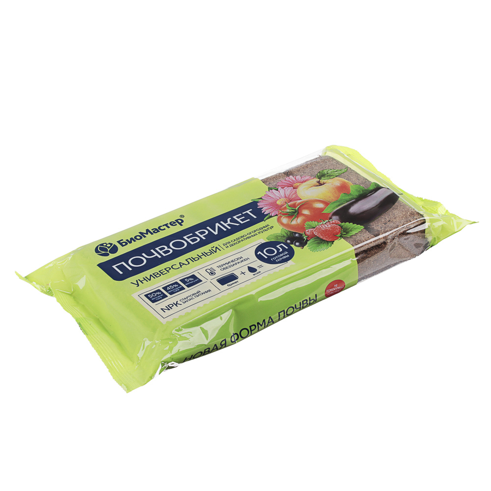 Почвобрикет БиоМастер Универсальный используется для выращивания садовых и комнатных растений. Способствует здоровому росту и развитию растений, усиливает интенсивность цветения и урожайность. Особенн... Показать описаниеости: поддерживает идеальное соотношение воздуха и влаги для развития здоровой корневой системы. Стартовый запас питательных веществ. Способствует активному росту и цветению растений, гарантирует высокую урожайность. Не содержит патогенной микрофлоры, что снижает риски развития болезней растений. Подходит для: всех видов садово-огородных и комнатных растений. Состав: верховой торф - 50%, переходный торф - 45%, вермикулит - 5%, комплексное удобрение. рН – 5,5-6,8. Рекомендации Хранить в местах, недоступных для детей и животных, отдельно от пищевых продуктов и медикаментов. Во время работы соблюдать правила безопасности и личной гигиены, пользоваться резиновыми перчатками.