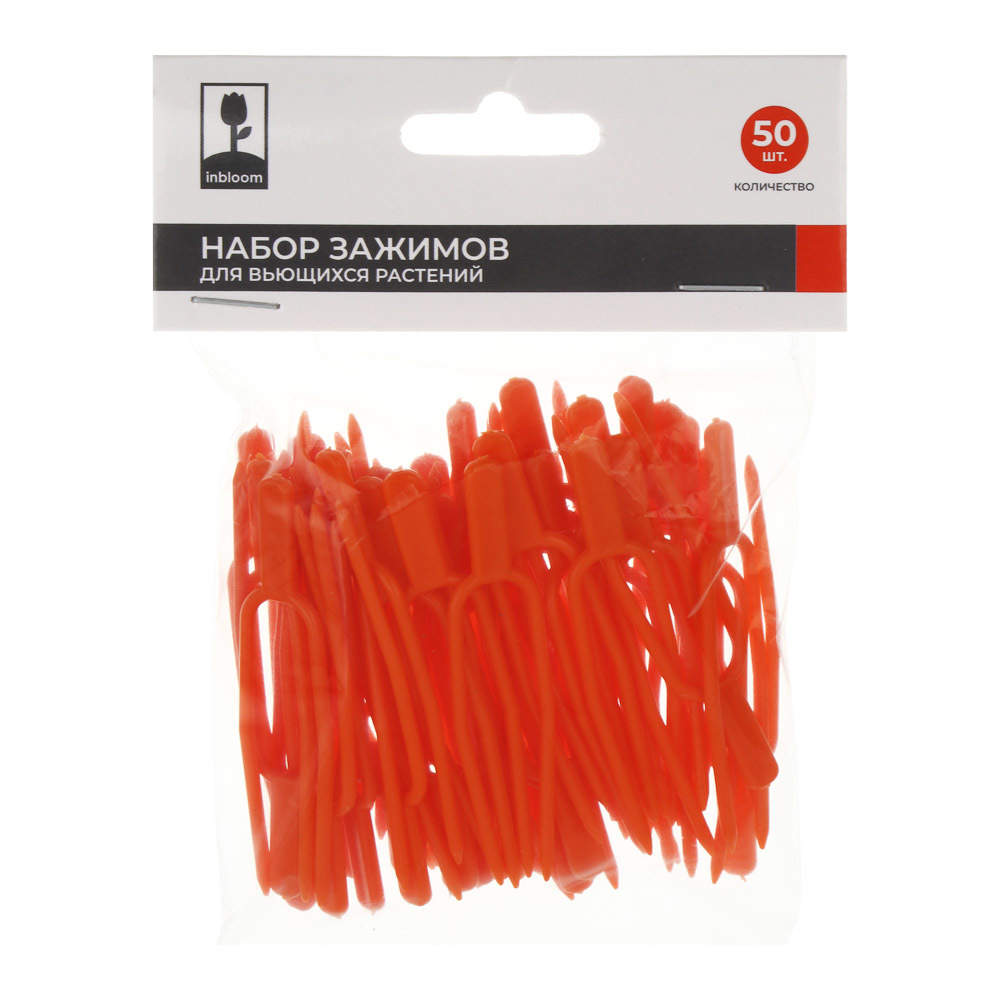 Набор зажимов для вьющихся растений INBLOOM из пластика 6,5 см включает 50 зажимов. Используется для фиксации стеблей на опорах и формирования правильного направления роста растений. Подходят для созд... Показать описаниеания декоративного озеленения веранд и арок. Зажимы не повреждают стебли, удобны в использовании и могут использоваться как для декоративных растений, так и для овощных культур. 50 штук в упаковке.