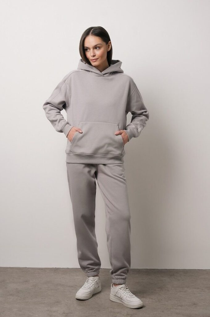 Костюм мужской спортивного стиля из петельчатого полотна «футер» 3-х нитка , состоящий из толстовки и джоггеров. Толстовка свободной формы со спущенным втачным рукавом; капюшоном и вышивкой на полочке... Показать описание, манжетами по рукавам и низу из трикотажного полотна «кашкорсе». На капюшоне люверсы и шнур, для регулировки объёма по горловине. Капюшон на подкладке из х/б трикотажного полотна-«кулирка». Джоггеры также свободной формы, с боковыми карманами, отрезным поясом на резинке. По поясу брюк кулиса, позволяющая регулировать объём изделия. Низ брюк собран на резинку. Костюм отлично подойдёт как для занятий спортом, так и вечерних прогулок. Ткань: Футер Состав: Хлопок 65%, ПЭ 35% Цвет: черный, бежевый
