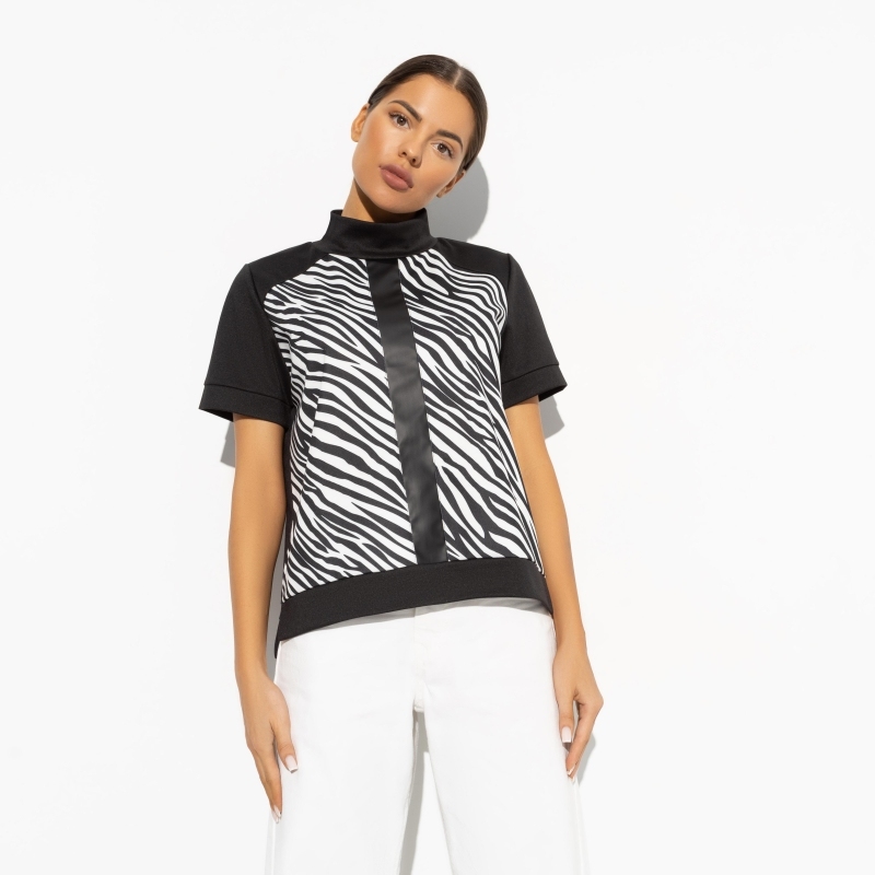 ТН ВЭД: 6110309900. Состав: Трикотаж «милано», «экокожа» (65% п/э, 30% вискоза, 5% стрейч) Плотность ткани: Средняя. Тип ткани: Трикотаж. Вид застежки: Нет. Дополнительный цвет ткани: Белый. Карманы: ... Показать описаниеНет. Основной цвет ткани: Черный. Отрезная талия: Есть. Подклад: Нет. Резинка по талии: Нет. Рисунок/раппорт: Каждое изделие уникально из-за расположения рисунка на ткани Сезон: Круглогодичный. Силуэт: Свободный. Стиль: Повседневный. Параметры модели на фото: Грудь: 88 см. Талия: 61 см. Бёдра: 89 см. Рост: 170 см. Размер на модели: 44. Длина изделия: * 44 размер - 59 см. * 46 размер - 60 см. * 48 размер - 61 см. * 50 размер - 62 см. * 52 размер - 63 см. * 54 размер - 64 см. Длина рукава: * 44 размер - 20 см. * 46 размер - 20,5 см. * 48 размер - 21 см. * 50 размер - 21,5 см. * 52 размер - 22 см. * 54 размер - 22,5 см. Вес товара, кг: * 44 размер - 0.21. * 46 размер - 0.23. * 48 размер - 0.25. * 50 размер - 0.26. * 52 размер - 0.25. * 54 размер - 0.26. Габариты товара (ДхШхВ), см.: * 44 размер - 32 х 32 х 2. * 46 размер - 32 х 32 х 2. * 48 размер - 32 х 32 х 2. * 50 размер - 32 х 32 х 2. * 52 размер - 32 х 32 х 2. * 54 размер - 32 х 32 х 2. Затаиться и наблюдать – часть твоей жизненной стратегии. Понимать причины и следствия, видеть, как зарождается дружба и перерождаются отношения. В водолазке с анималистичным принтом ты чувствуешь себя героем документального кино о диком мире саванны. Водолазка с коротким рукавом. Есть деликатные разрезы по бокам изделия. Повороты на рукавах прошиты. Эта водолазка не для тех, кто скрывается в тени. Она создана для тех, кто готов заявить о себе миру. Сочетание трикотажа «милано» и «набивного» трикотажа обеспечивает комфорт и стиль, а вставки из экокожи добавляют смелости и оригинальности вашему образу. Выразите свою смелость и уверенность в этой водолазке, которая подойдет для любых ситуаций, от повседневных встреч до важных переговоров. Сильный характер требует сильных элементов стиля. Анималистичный принт на этой водолазке станет вашим заявлением о силе и решимости. Он не только придает вашему образу энергию и динамизм, но и подчеркивает вашу способность рисковать и выделяться из толпы. Покажите миру свою силу и уверенность в этой стильной водолазке с анималистичным принтом. Подробное описание: 687357936