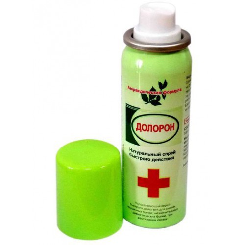 «Долорон» спрей успокаивающий имеет уникальнейший состав из натуральных ингредиентов. В него входит большое количество вытяжек из растений, которые в сочетании оказывают благотворное воздействие на ор... Показать описаниеганизм человека. Спрей проникает через кожу и локализирует причину боли. Данный спрей имеет ярко выраженный обезболивающий эффект быстрого действия. Спрей имеет широкий спектр действия. «Долорон» рекомендуется использовать при мышечных, суставных, ревматических болях, при растяжении связок, он отлично снимает воспаления при ушибах, вывихах, растяжениях связок и мышц. Как использовать: При простуде распылить на грудь и растирать в течение 5 минут, а после этого укрыть теплой повязкой. В случае головной боли намажьте лоб и виски на ночь. При мышечных и суставных болях втирайте в больное место. Противопоказания: Индивидуальная непереносимость компонентов. Состав: Масло винтергрен 15%, мята полевая 5%, масло скипидар 3%, масло корица 0,4%, эвкалипт 2%, аэрозоли и растворители q.s.