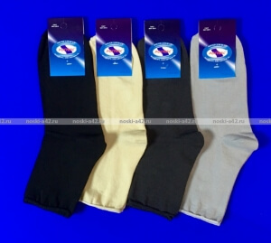 Состав: хлопок - 80%, ПА - 15%, эластан - 5%. Классические носки гладкого плетения с однобортной резиной.