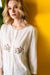 Описание Нежнейшая удлинённая блузка современного свободного кроя выполнена из невесомого хлопкового полотна.Чудесный вариант для стильной девушки на каждый день тёплого лета. Спереди блузка декориров... Показать описаниеана изысканной вышивкой с цветочными мотивами.Рукав длиной 3/4 снизу присборен и застёгивается на притачную манжету.По переду лиф отрезной.По спинке также выполнен горизонтальный рез.Нижние детали переда и спинки присборены по вержнему срезу.Вырез горловины круглый.Застёжка на планке на петли и пуговицы. Параметры Рост: 164 42 Блузка: Длина изделия - 73см, Длина рукава - 47см, Ширина плеча - 8см, Ширина по груди - 48см, Ширина рукава - 16см; 44 Блузка: Длина изделия - 73см, Длина рукава - 47см, Ширина плеча - 8см, Ширина по груди - 50см, Ширина рукава - 16.5см; 46 Блузка: Длина изделия - 73см, Длина рукава - 47см, Ширина плеча - 8.5см, Ширина по груди - 52см, Ширина рукава - 17см; 48 Блузка: Длина изделия - 74см, Длина рукава - 47см, Ширина плеча - 8.5см, Ширина по груди - 54см, Ширина рукава - 17.5см; 50 Блузка: Длина изделия - 75см, Длина рукава - 47см, Ширина плеча - 8.5см, Ширина по груди - 56см, Ширина рукава - 18см; Состав и уход Состав: Хлопок 100%. Уход: * Стирка при температуре воды до 30°C * Не отбеливать * Гладить при температуре утюга до 110°C * Вертикальная сушка * Барабанная сушка запрещена * Профессиональная сухая чистка в тетрахлорэтилене и во всех растворителях, внесенных в список для символа F.