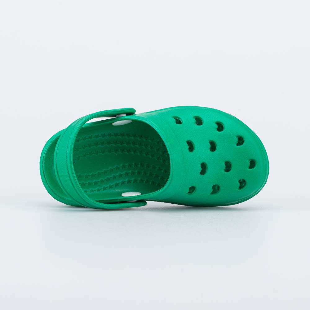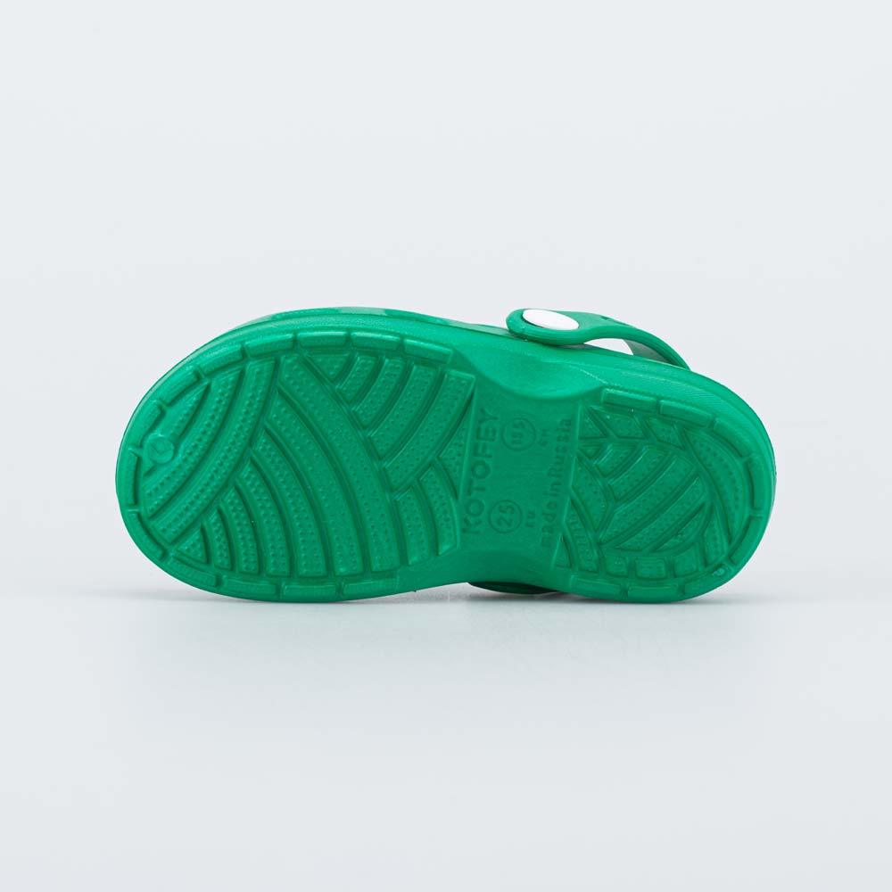 Лёгкие и удобные сабо зеленого цвета подходят для прогулок как по пляжу, так и по городу. Обувь полностью выполнена из материала ЭВА (этиленвинилацетата) - очень лёгкого, гибкого, эластичного и аморти... Показать описаниезирующего. Он быстро сохнет и его легко мыть. Закрытый носок защищает пальцы от горячего песка и камней, при этом перфорация позволяет стопе дышать. Перекидной ремешок надежно фиксирует обувь на ноге. Внутренняя анатомическая форма модели повторяет форму стопы. Сделано в России. Сабо можно украсить стильными декоративными элементами - котофишками. Посмотреть коллекцию https://kotofey.ru/market/soputstvuyuwie-tovary/aksessuary/kotofiski.