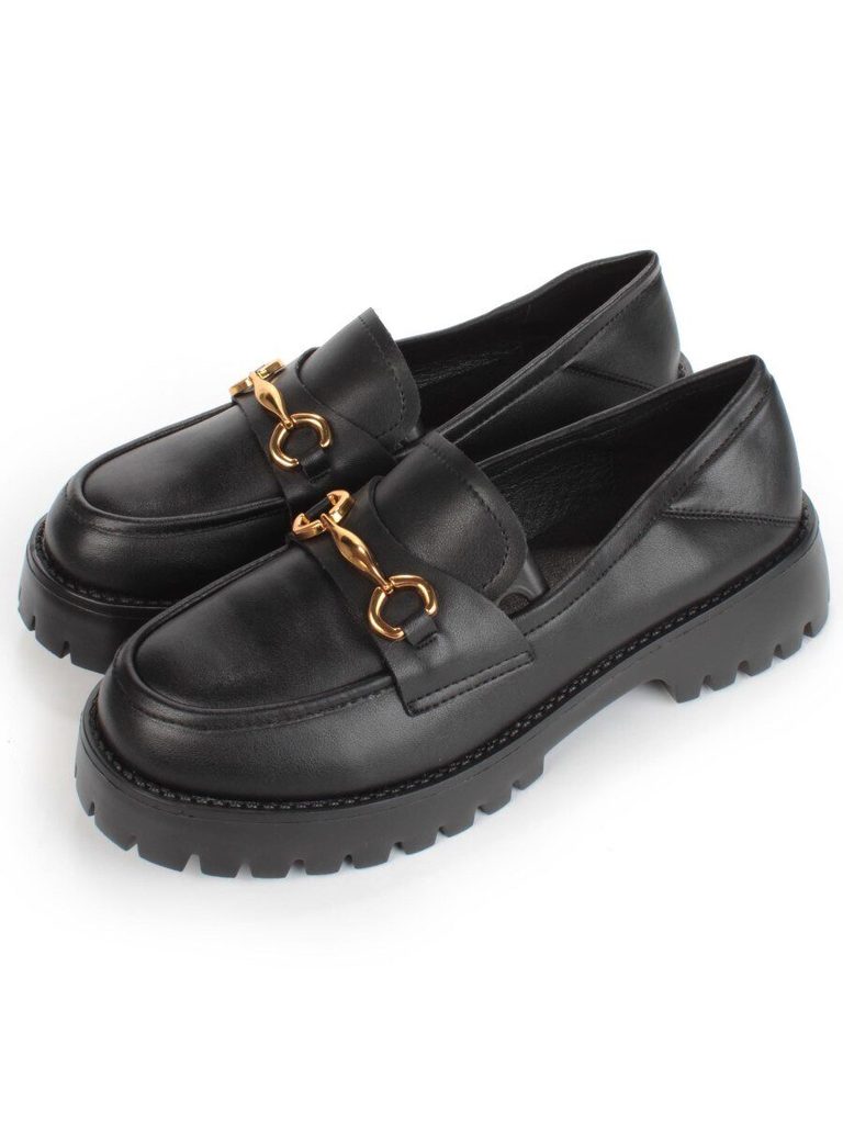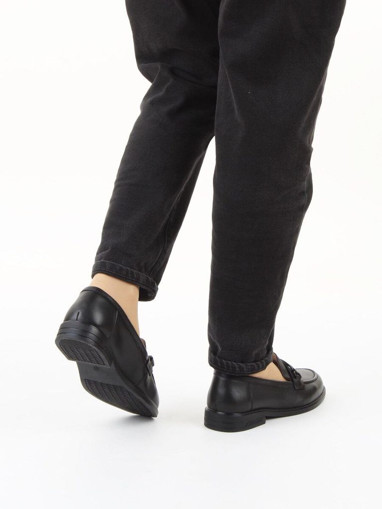 Черные кожаные лоферы на массивной тракторной подошве подходят для девочки-подростка. Верх, подкладка и стелька изготовлены из натуральной кожи – износостойкого, гипоаллергенного и дышащего материала.... Показать описание Подошва из ТЭП (термоэластопласта) – износостойкая и амортизирующая. Лаконичный дизайн лоферов позволяет сочетать их со школьной формой. Модель анатомически правильная: создана с учетом особенностей подростковой стопы. Сделано в России, Егорьевск.