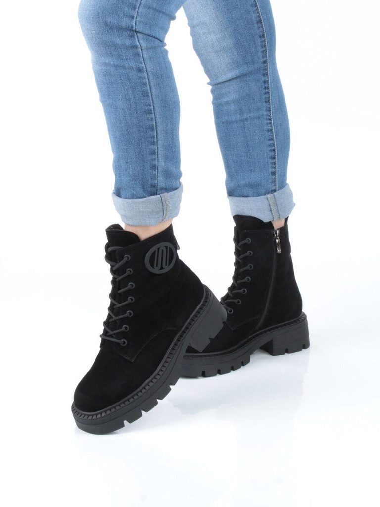 Ботинки зимние женские Артикул: 11-M1 BLACK Основной материал: натуральная замша, опушка натуральный мех. Вид кожи основного материала: бархатистая. Каблук: стандартный. Высота каблука: 3,0 см. М... Показать описаниеатериал подошвы: резиновая. Толщина подошвы: 2,0 см. Вид подошвы: стандартная. Способ соединения подошвы: клееная. Подкладка: шерсть. Стелька: шерсть. Застежка: шнуровка Тип мыска: закрытый Тип задника: закрытый Дополнительная информация: Витринный образец 39-го размера. Высота обуви по центру: 17,0 см. Объем щиколотки: 38 см. Ширина подошвы: 10,5 см. Высота голени: 13,0 см. Длина стельки: 25,0 см. Модель идет размер в размер! Длина стельки каждого отдельно взятого размера: 36 длина стельки 23,0 см. 37 длина стельки 23,5 см. 38 длина стельки 24,5 см. 39 длина стельки 25,0 см. 40 длина стельки 25,5 см. Цвет: Черный