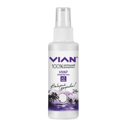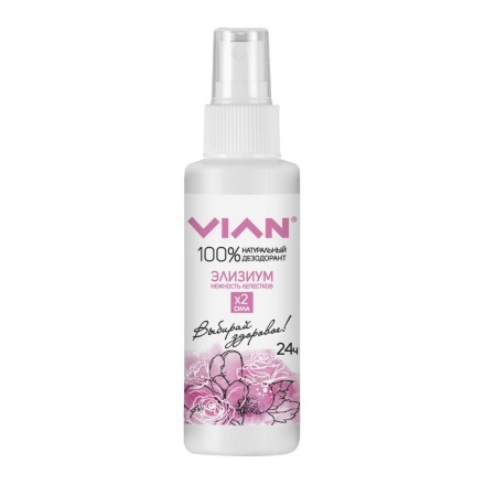 Натуральный дезодорант VIAN на основе природной соли - квасцов, "жидкий кристалл" в новой удобной форме спрея! Квасцы останавливают развитие бактерий, вызывающих запах пота. При этом они не вредят орг... Показать описаниеанизму, не закупоривают поры, не всасываются в ткани, действуют только на поверхности кожи, в отличие от антиперспирантов. Двойная концентрация квасцов (по сравнению с шариковыми дезодорантами VIAN) - двойная сила действия против запаха пота.