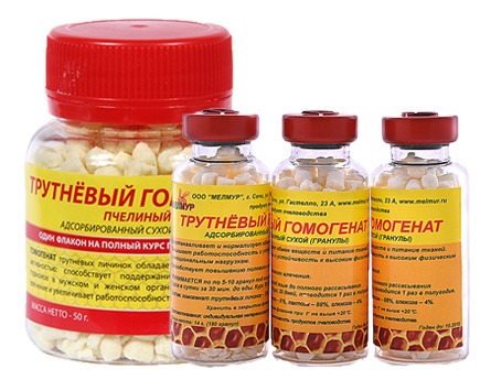 Концентрация гомогената трутнёвых личинок в сухом веществе – 8% (в «нативном выражении» - 25%) Биологическая активность трутневого гомогената по ряду показателей выше, чем у маточного молочка. На 50% ... Показать описаниегомогенат состоит из тех же компонентов, что и маточное молочко, но отличается большим количеством функциональных групп ферментов, а также гормонов. Благодаря такому набору веществ ГТЛ способствует ускоренному восстановлению биохимических и массометрических характеристик семенников и предстательной железы, выступая стимулятором центральных механизмов регуляции интенсивности образования мужских половых гормонов, что способствует продуцированию спермы (сперматогенез) у мужчин.