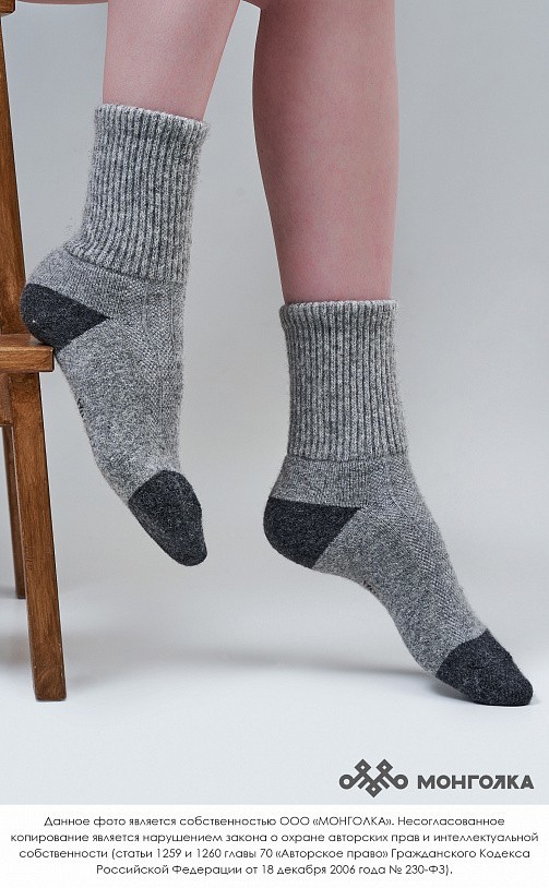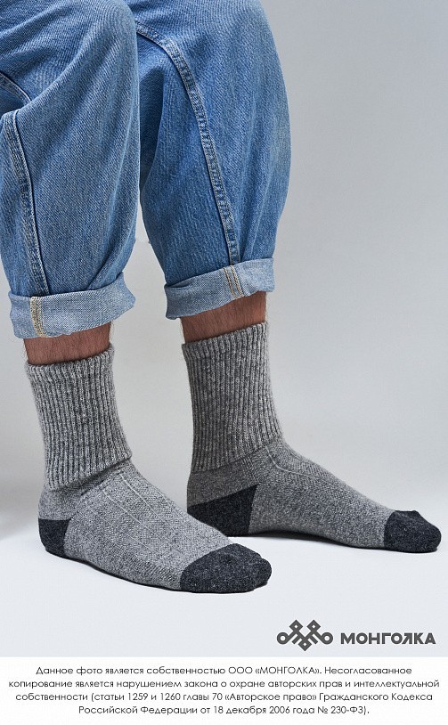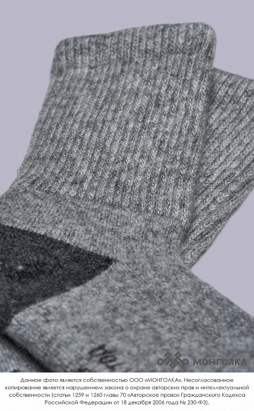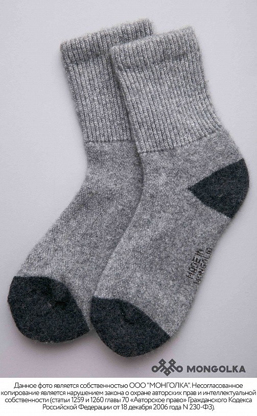 Носки из овечьей шерсти сохраняют ноги в тепле в любую погоду, при этом аккуратно смотрятся и плотно облегают стопу. В шерстяных носках ногам будет комфортно, ведь они хорошо фиксируются и не стесняют... Показать описание движение, приятные на ощупь и не колются. Носки из шерсти монгольской овцы износостойкие и будут радовать долгое время, связаны в технологии двойной вязки, а на подошве толщина материала увеличена. В составе носков 70% натуральной овечьей шерсти, которая обладает обезболивающими, противовоспалительными свойствами, из-за чего носки помогут при болях в суставах. Из-за свойств натуральной шерсти носки отводят лишнюю влагу и дарят чувство тепла и сухости в любую погоду. Теплые носки сочетаются с любым образом, поэтому в них будет приятно ходить как дома, так и надевать с зимней обувью. Носки подойдут как мужчинам, так и женщинам и станут приятным подарком для близких. В нашем ассортименте вы найдете еще больше товаров из натуральной шерсти, доставленных напрямую из Монголии. * Производитель: Монголия, TOD * Состав: 70% шерсть монгольской овцы, 30% вискоза * Размер: 35-46 * Цвет: серый с чёрным * Полноразмерные, соответствуют размеру обуви * Укрепленная стопа