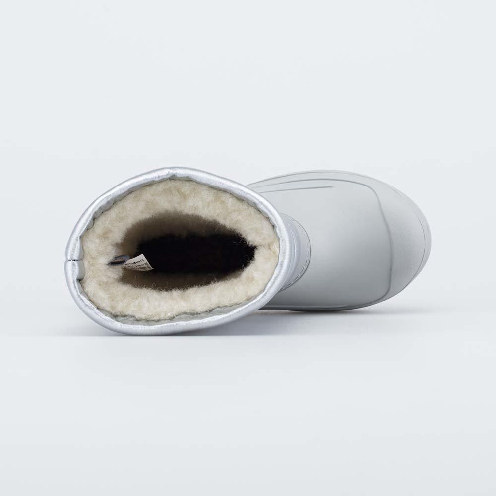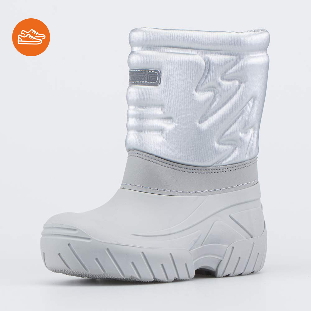 Сапожки SNOW& RAIN для девочки дошкольного возраста сочетают в себе достоинства резинового сапога и утепленной обуви. Материал верха - специальный текстиль, защищающий от ветра, грязи и брызг. Галоша ... Показать описаниеиз ТЭП (термоэластопласта) обеспечивает защиту от влаги и при этом обладает повышенной теплоизоляцией и устойчивостью на зимних дорожках. Материал подкладки и стельки - шерстяной мех, который отлично сохраняет тепло, отводит от стоп влагу. Сноубутсы интересны своим серебристым цветом. Светоотражающие элементы обеспечивают безопасность в темноте. Модель анатомически правильная: имеет небольшую приподнятость в пяточной части и круглый носок, обеспечивает устойчивость на дороге с морозной слякотью. Сделано в России. Внимание: во избежание намокания обуви не рекомендуется наступать в лужу выше уровня галоши!