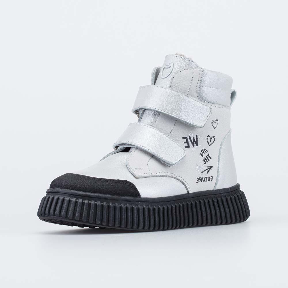 Описание Описание модели Зимние кожаные ботинки украшены принтом и походят для девочки. Верх выполнен из натуральной гладкой кожи серебристого цвета. Носочная часть защищена кожаной накладкой с полиур... Показать описаниеетановым покрытием, предохраняющей обувь от реагентов и повреждений. Подкладка из шерстяного меха и вкладная войлочная стелька отлично согревают и отводят от стоп влагу. Липучки-велькро позволяют ребенку быстро обуваться и разуваться. Модная кедовая подошва из ТЭП (термоэластопласта) обеспечивает дополнительную теплоизоляцию и обладает повышенной устойчивостью на зимних дорожках. Модель разработана для детей школьного возраста, поэтому большое внимание уделено правильной анатомии обуви и поддержке стопы. Сделано в России, Егорьевск.