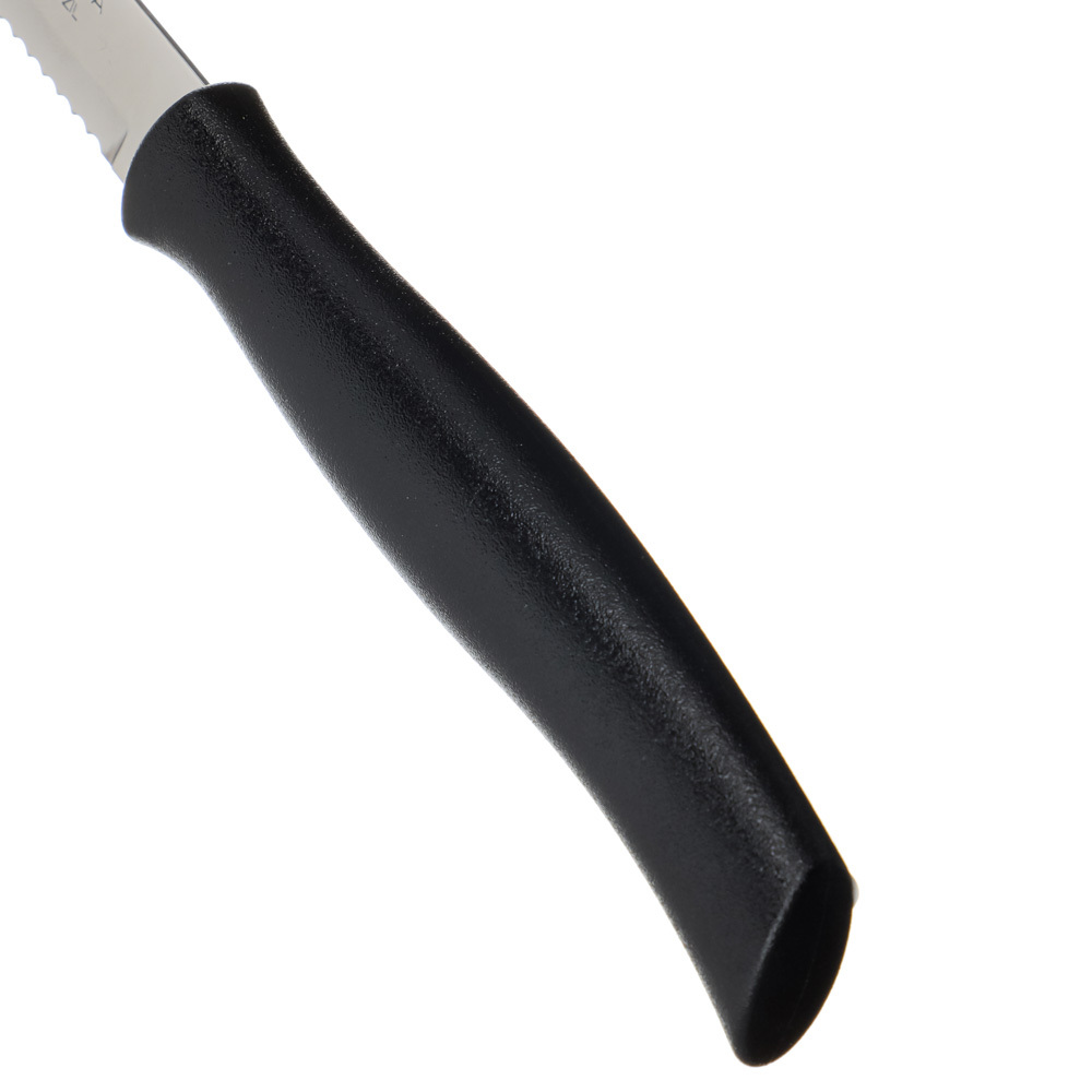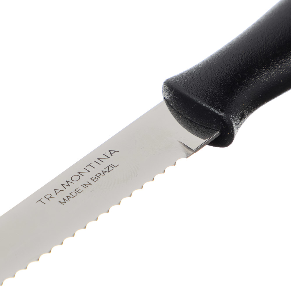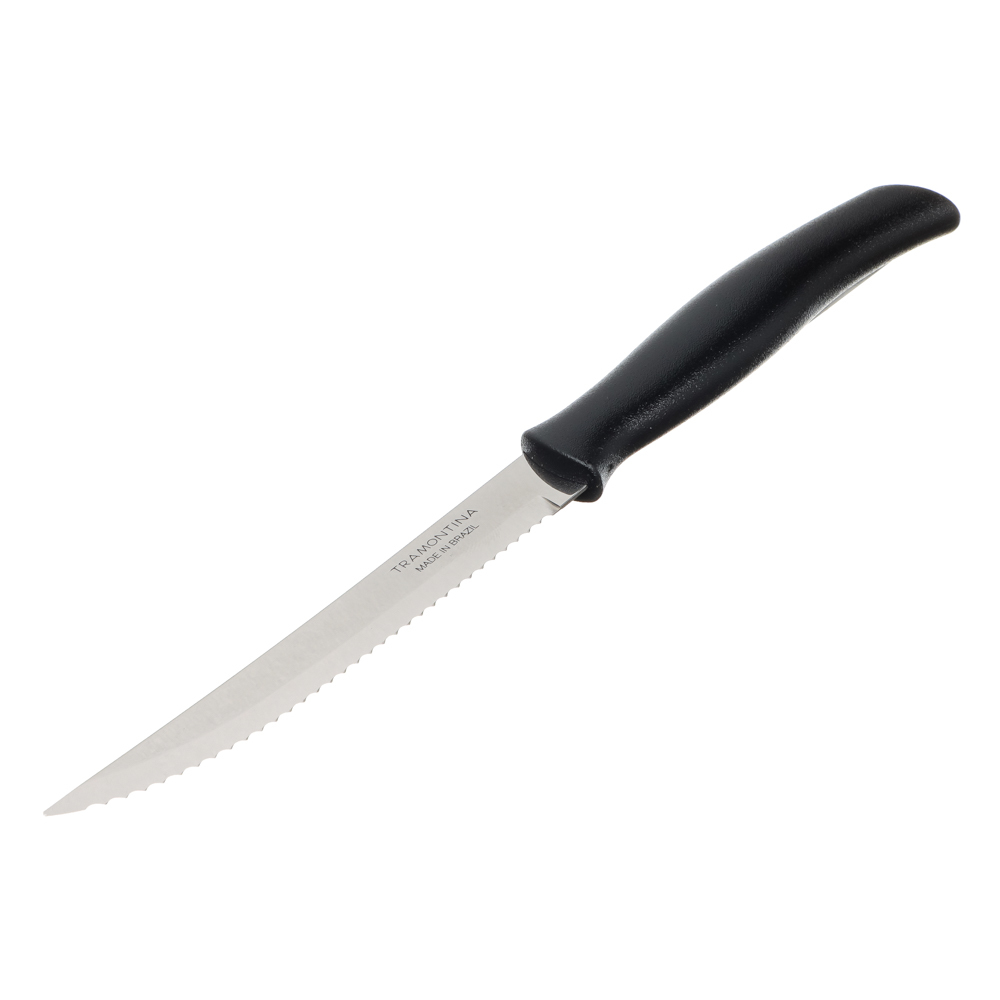 Отличный нож Tramontina Athus с крупной пилообразной режущей кромкой. Лёгкий и удобный в руке. Изготовлен из качественной нержавеющей стали, имеет приятную на ощупь полипропиленовую рукоять. Рекоменда... Показать описаниеции Мыть вручную в теплой воде с мягкими моющими средствами, после чего сполоснуть и вытереть.