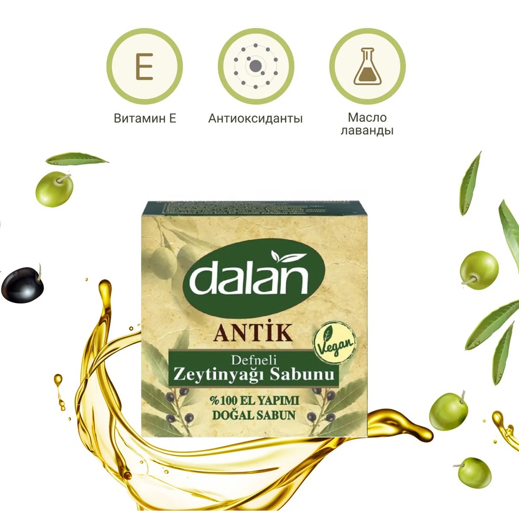 Турецкое мыло ручной работы Dalan Soap Antique позволит вам испытать настоящее блаженство. В его составе много полезных компонентов. Они бережно ухаживают за кожей рук, делая ее чистой, свежей и более... Показать описание увлажненной. Оливковое масло известно своими питательными свойствами. В составе мыла Dalan Soap оно помогает коже рук противостоять негативным факторам, которые вызывают сухость и раздражения. Поэтому после применения этого средства у вас не будет ощущения стянутости. Только красивая, идеально чистая кожа, которая словно сияет изнутри. Благодаря витамину Е и антиоксидантам мыло помогает коже избавиться от токсинов. Регулярное применение позволит очищать более глубокие слои дермы, что положительно скажется на внешнем виде кожи: она станет более упругой, нежной, будет выглядеть моложе. Отсутствие вредных компонентов позволяет использовать это мыло при походах в баню. Его приятный аромат подарит истинное наслаждение при использовании. Побалуйте себя настоящей турецкой косметикой, чтобы ощутить, на что способна ваша кожа. Состав Оливат натрия, вода, ядро пальмового масла натрия, хлорид натрия, лаурат натрия.
