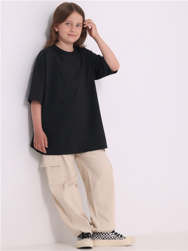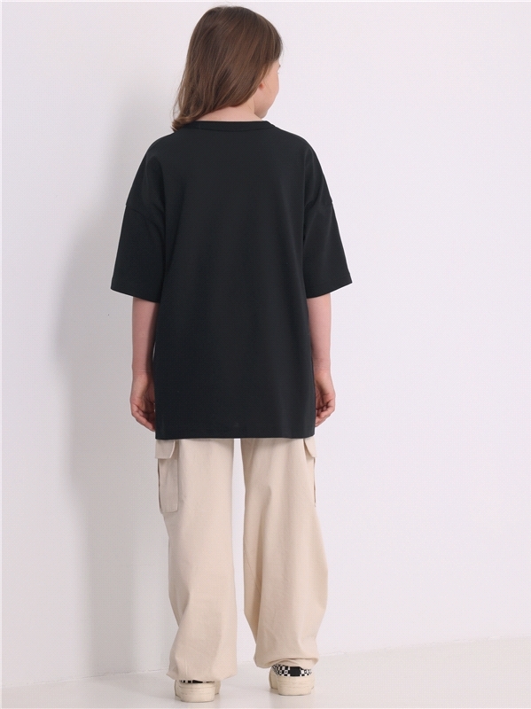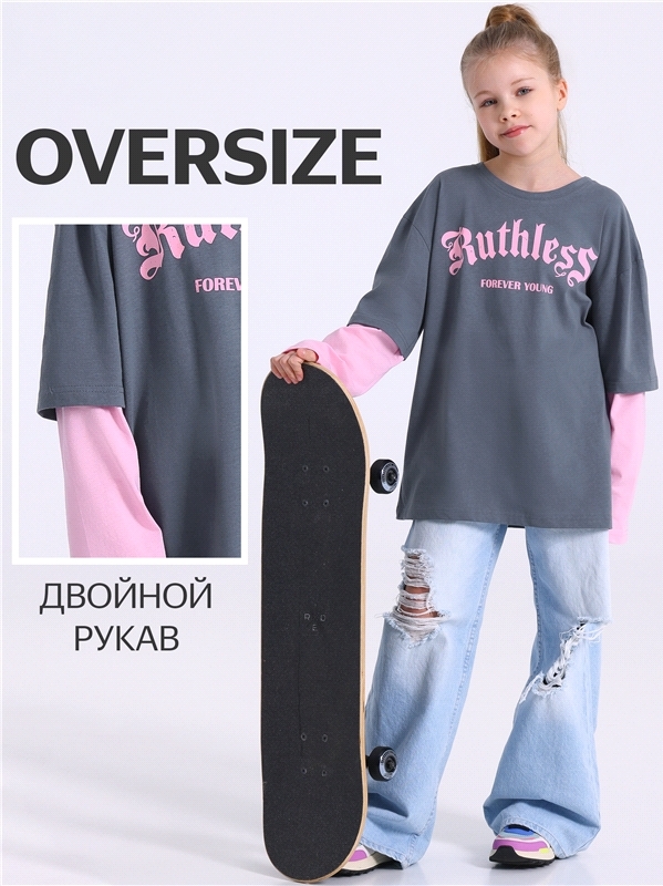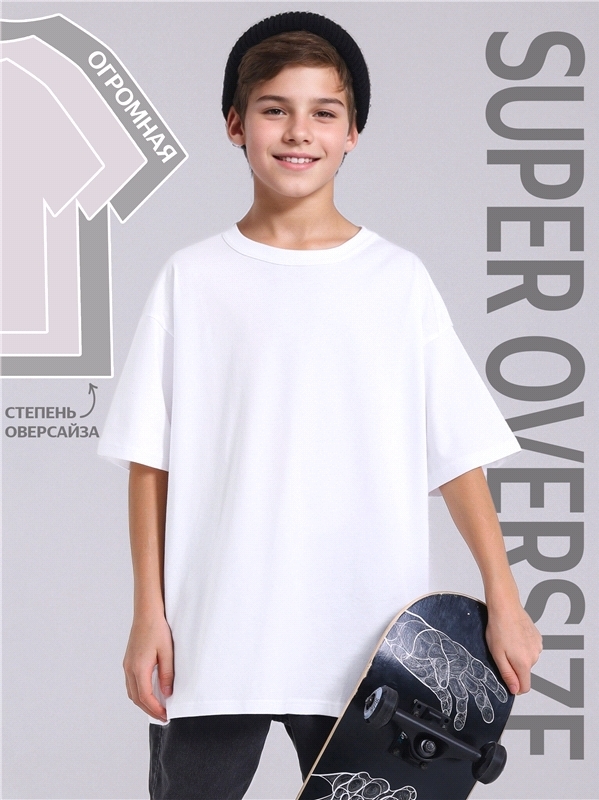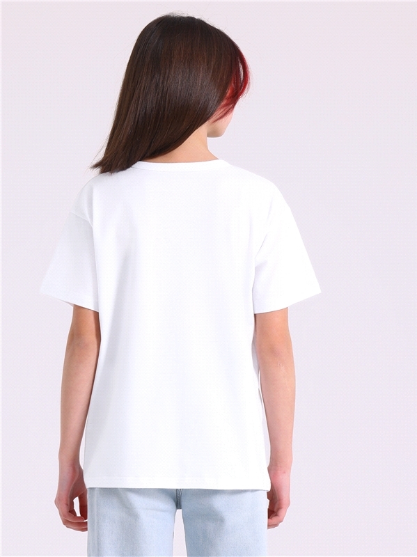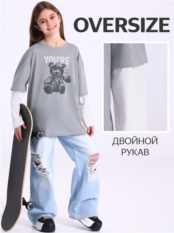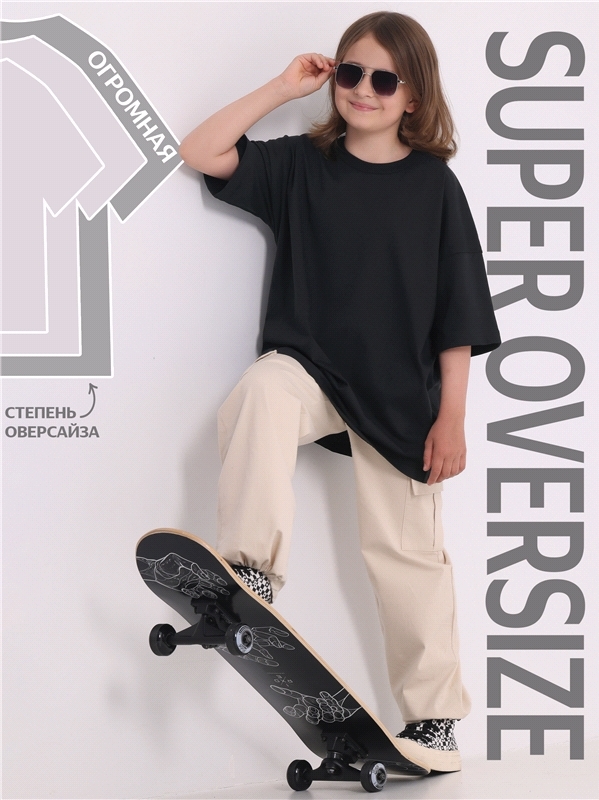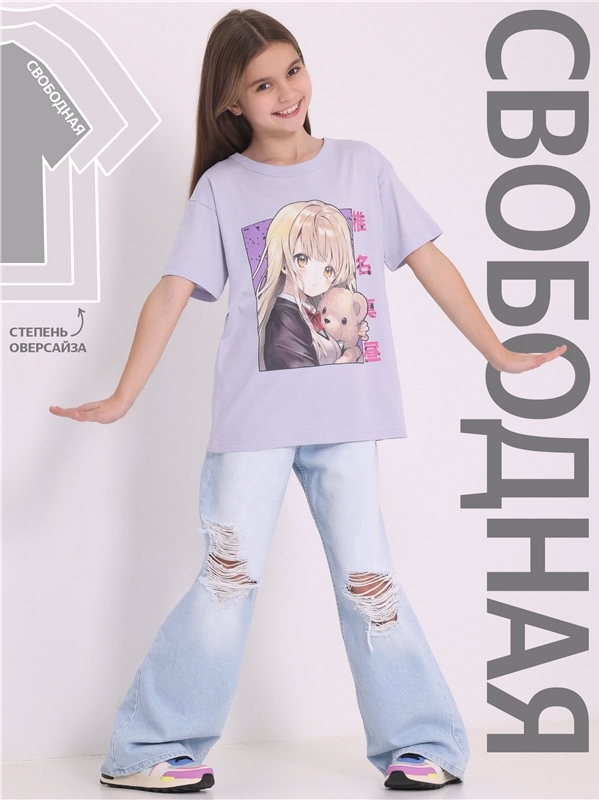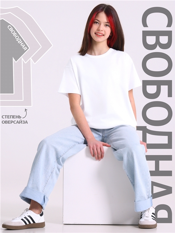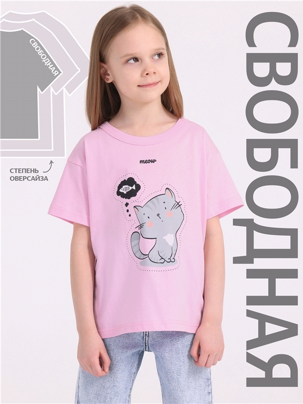 Оверсайз футболка для девочки выполнена из кулира – легкого хлопкового полотна. Изделие прямого покроя, с короткими рукавами, со спущенной линией плеча, Круглый вырез горловины обработан эластичной бе... Показать описаниейкой из полотна компаньона, украшено печатью. Уход: только машинная стирка (руками не стирать!) при температуре 40 градусов, без предварительного замачивания. Изделия с печатью и декором перед стиркой необходимо вывернуть на изнаночную сторону. Состав: кулир / хлопок 100%.