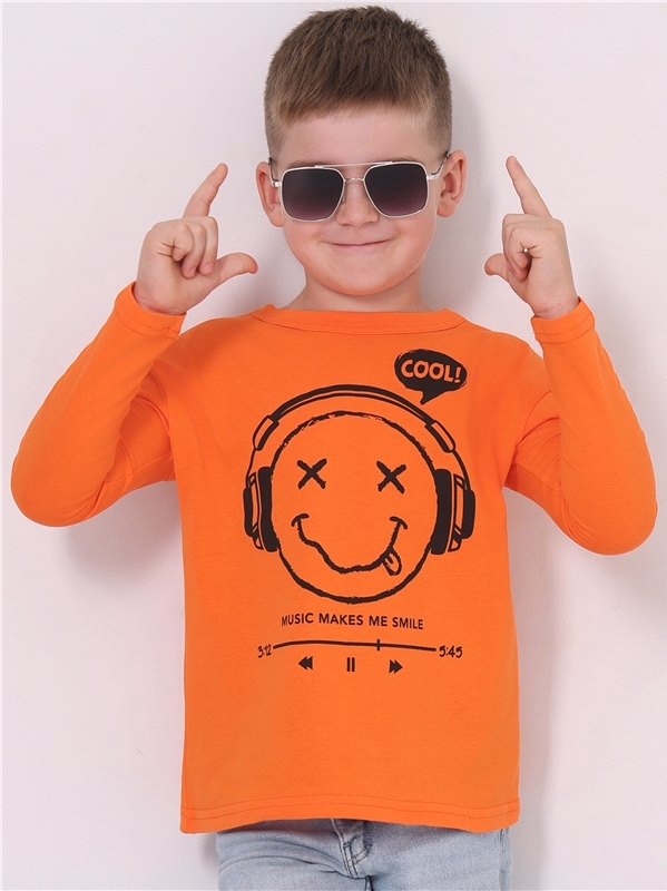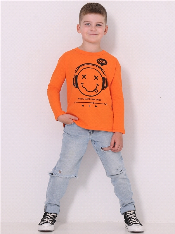 Лонгслив для мальчика выполнен из кулира – легкого хлопкового плотна. Изделие прямого силуэта и свободного кроя, с длинными рукавами со спущенной линией плеча, вырез горловины обработан эластичной бей... Показать описаниекой из полотна компаньона. Украшен стильным принтом. Уход: только машинная стирка (руками не стирать!) при температуре 40 градусов, без предварительного замачивания. Изделия с печатью перед стиркой необходимо вывернуть на изнаночную сторону. Состав: кулир / хлопок 100%.