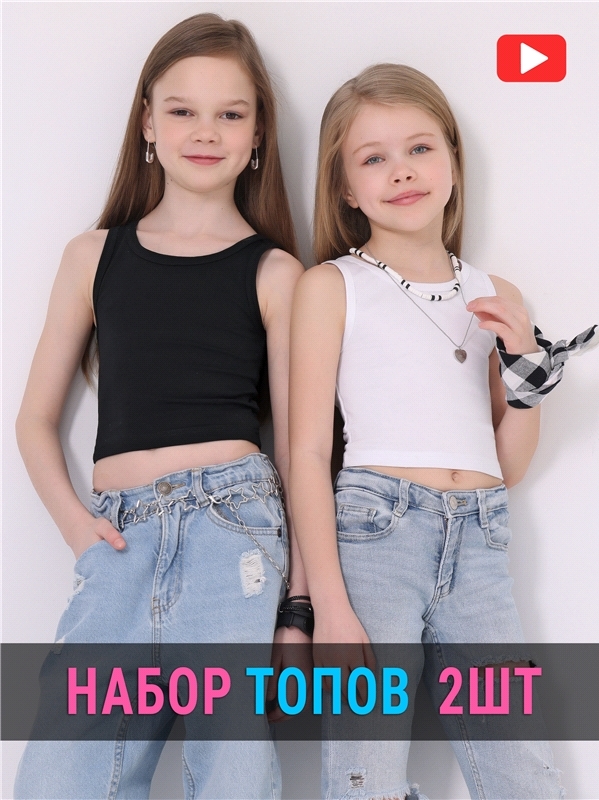 Комплект из двух укороченных топов для девочки выполнен из кулира - тонкого хлопкового полотна с лайкрой. Топ прилегающего силуэта на широких бретелях. Отличный выбор для жаркого летнего дня! Уход: то... Показать описаниелько машинная стирка (руками не стирать!) при температуре 40 градусов, без предварительного замачивания. Состав: кулир с лайкрой / хлопок 92% + лайкра 8%.