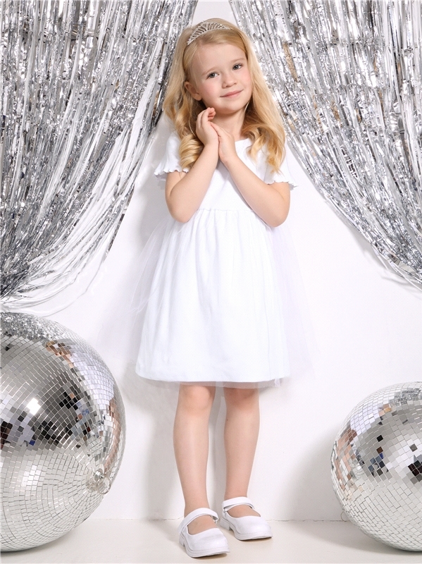 Праздничное платье для девочки выполнено из мягкого хлопкового полотна с лайкрой. Изделие полуприлегающего силуэта, с округлым вырезом горловины и короткими рукавами. Юбка полусолнце продублирована мя... Показать описаниегкой сеточкой. Отличный выбор для праздника для маленьких принцесс! Уход: только деликатная стирка при температуре 40 градусов, без предварительного замачивания. Состав: кулир с лайкрой / хлопок 90% + лайкра 8% + пэ 2%.