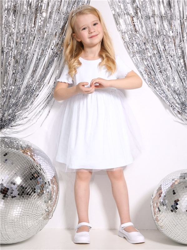 Праздничное платье для девочки выполнено из мягкого эластичного хлопкового полотна в рубчик. Изделие полуприлегающего силуэта, с округлым вырезом горловины и короткими рукавами. Юбка полусолнце продуб... Показать описаниелирована мягкой сеточкой. Отличный выбор для праздника для маленьких принцесс! Уход: только деликатная стирка при температуре 40 градусов, без предварительного замачивания. Состав: ластик / хлопок 95% + лайкра 5%.