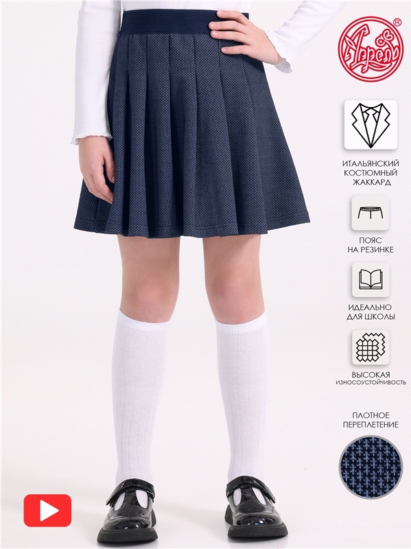 Школьная юбка в складку из плотного полотна с рельефным рисунком, выполненным с применением жаккардового плетения. Изделие трапециевидного силуэта, длиной до середины бедра, на комфортном эластичном п... Показать описаниеоясе. Отличный выбор для школьницы на каждый день! Уход: только машинная стирка (руками не стирать!) при температуре 40 градусов, без предварительного замачивания. Состав: жаккард / хлопок 55% + ПЭ 42% + лайкра 3%.