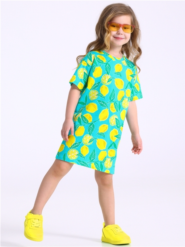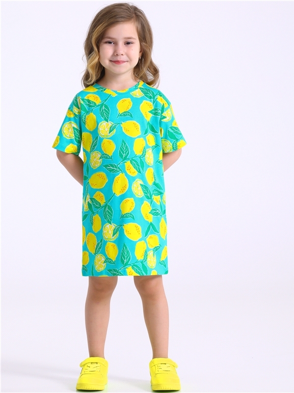 Платье для девочки выполнено из кулира - легкого хлопкового полотна. Изделие с короткими рукавами, юбочка присборена по линии талии, полочка украшена нежным принтом. Отличный выбор для теплого летнего... Показать описание дня! Уход: только машинная стирка (руками не стирать!) при температуре 40 градусов, без предварительного замачивания. Изделия с печатью и декором перед стиркой необходимо вывернуть на изнаночную сторону. Состав: кулир / хлопок 70% + ПЭ 30%.