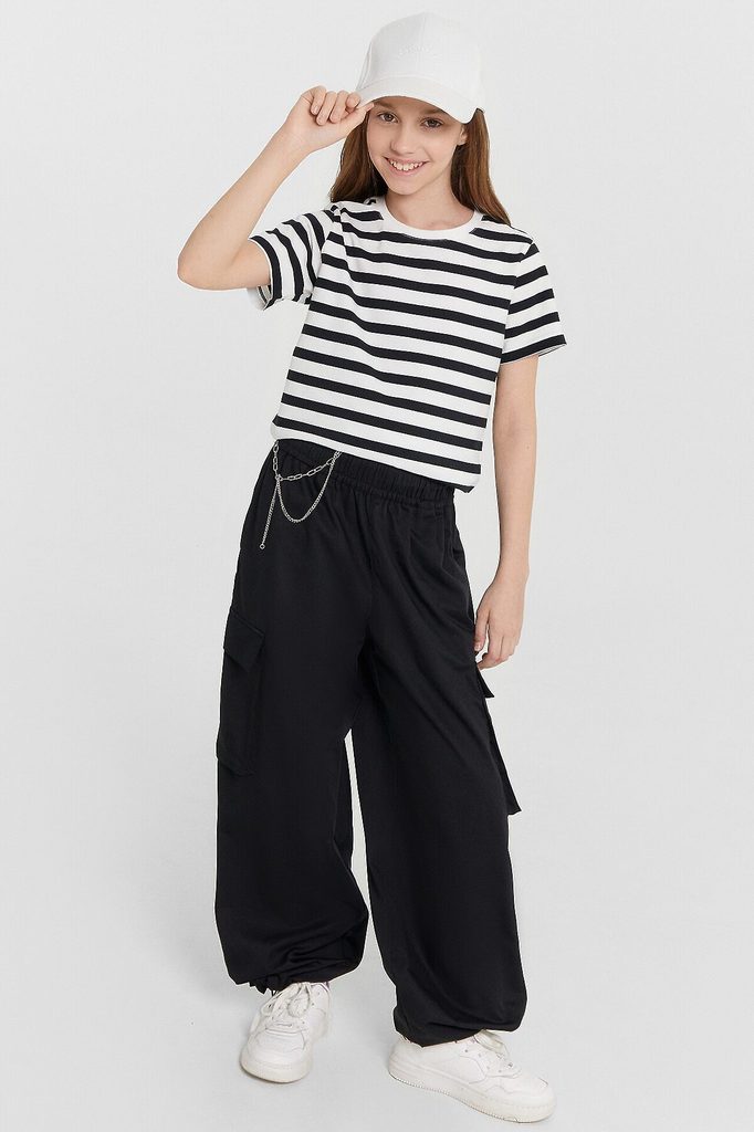 ID товара: 1104530 Акции: -2%, до 11.11.2025 Состав: 65% Полиэстер; 35% Хлопок Сезон: Весна/Лето Длина: Полная Вид застежки: Без застежки Посадка: Высокая Декоративные элементы: Карман Утеплитель: Без... Показать описание утепления Основная ткань: Полиэстер Стиль: повседневный Уход: Деликатная стирка при 30 градусах Особенности модели: Нет Фактура материала: Тканое полотно Страна бренда: Беларусь Страна производства: Беларусь Брюки карго для девочек — стильное и практичное решение, которое легко добавит оригинальности любому образу! Модель свободного кроя обеспечивает комфорт и свободу движений, что делает их отличным выбором для активных дней. Эластичная талия гарантирует удобную посадку, а наличие боковых и накладных карманов с клапанами добавляет функциональности и завершает современный дизайн. Эти детали не только практичны, но и подчеркивают динамичный стиль брюк. Изделие выполнено из смесового материала с добавлением натурального хлопка, что делает ткань мягкой, приятной к телу и долговечной. Такой материал обеспечивает комфорт при носке и сохраняет аккуратный вид после многочисленных стирок. Эти брюки карго — отличный вариант для создания стильных и удобных образов на каждый день!