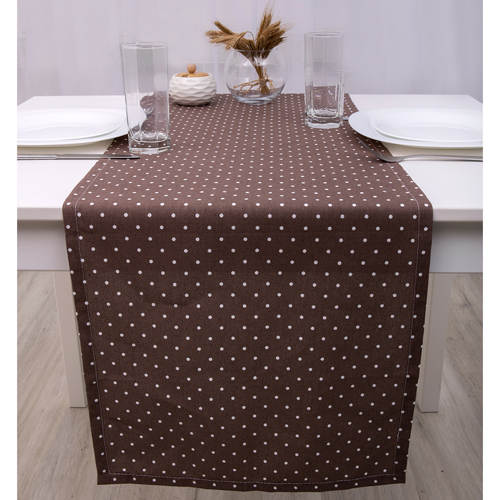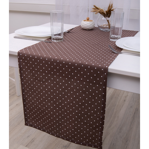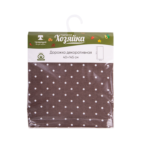 Ткань: Рогожка Состав: 100% хлопок Дизайн: Горошек мокко Линейка: Радушная хозяйка (Традиция) Тематика: Абстракция Цветовая гама: Яркие тона Комплектация: Дорожка декоративная - 1 шт. Упаковка: Пакет ... Показать описаниес крючком, фирменный вкладыш Страна: Россия Дорожка декоративная 40х145 "Радушная хозяйка (Традиция)", выполнена из набивной рогожки (100% хлопок), с современными эксклюзивными дизайнами. Дорожка сделает сервировку стола оригинальной и интересной, а также защитит стол от царапин и различных загрязнений. Благодаря небольшим размерам за дорожкой ухаживать проще, чем за большой скатертью. Можно экспериментировать с сервировкой, дорожку можно стелить вдоль и поперек стола, использовать одну или несколько сразу, комбинировать со скатертью, дополнять другими изделиями из коллекции, например, полотенцами.