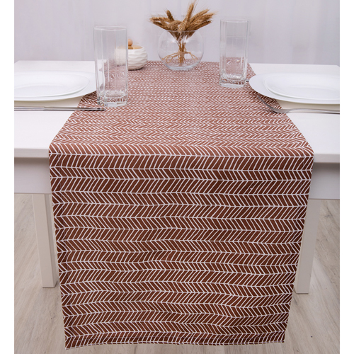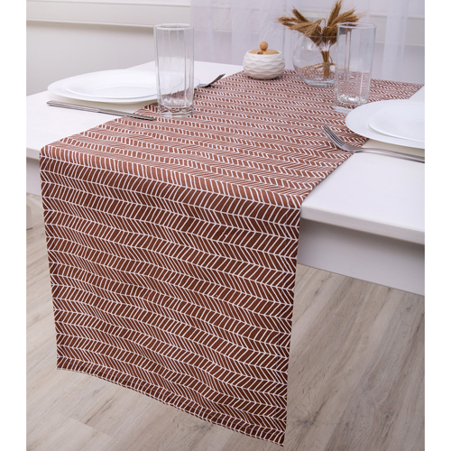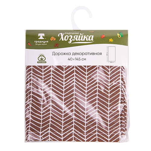 Ткань: Рогожка Состав: 100% хлопок Дизайн: Елочка коричневый Линейка: Радушная хозяйка (Традиция) Тематика: Абстракция Цветовая гама: Яркие тона Комплектация: Дорожка декоративная - 1 шт. Упаковка: Па... Показать описаниекет с крючком, фирменный вкладыш Страна: Россия Дорожка декоративная 40х145 "Радушная хозяйка (Традиция)", выполнена из набивной рогожки (100% хлопок), с современными эксклюзивными дизайнами. Дорожка сделает сервировку стола оригинальной и интересной, а также защитит стол от царапин и различных загрязнений. Благодаря небольшим размерам за дорожкой ухаживать проще, чем за большой скатертью. Можно экспериментировать с сервировкой, дорожку можно стелить вдоль и поперек стола, использовать одну или несколько сразу, комбинировать со скатертью, дополнять другими изделиями из коллекции, например, полотенцами.