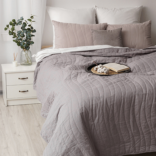 Ткань: Поплин Состав: 100% хлопок Дизайн: Графит Линейка: Стёганые покрывала Наполнитель: Синтепон Тематика: Однотонные Цветовая гама: Пастельные тона Плотность наполнителя: 80 гр./кв.м. Комплектация:... Показать описание Покрывало - 1 шт. Упаковка: Тубус ПВД на молнии, фирменный вкладыш Страна: Россия Покрывало стеганое двухстороннее из поплина размером 215х240. Ткань - 100% хлопок, отличается высокой практичностью и износостойкостью, проста в уходе, не линяет и не деформируется даже после множества стирок. Фигурная ниточная стежка не только украшает внешний вид покрывала, а также надежно фиксирует наполнитель из синтепона плотностью 80 гр./кв.м. Синтепон придает изделию мягкость, сохраняет тепло, гигиенически и экологически безопасен. Пошив в строгом соответствии с ГОСТ. Двухстороннее покрывало в трендовых цветах оживит вашу спальню, добавит тепла и комфорта.