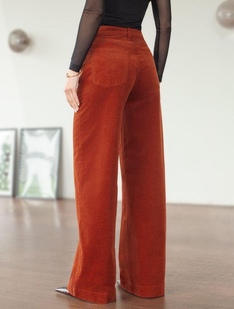 Состав: 98%Хлопок 2%ПУ Плотность: 310 Г/м2 Размер товара на первом фото: 42 Брюки свободного кроя «трубы» выполнены из мягкого хлопкового микро-вельвета с добавлением эластана. Изделие комфортно садит... Показать описаниеся по фигуре и не сковывает движения. Модель с пятью карманами, как у джинсов дополнена высококачественной фурнитурой с фирменным логотипом бренда. Идеально впишутся в повседневный образ, со свитером крупной вязки, курткой-косухой, ботинками на грубой подошве, челси и казаками.