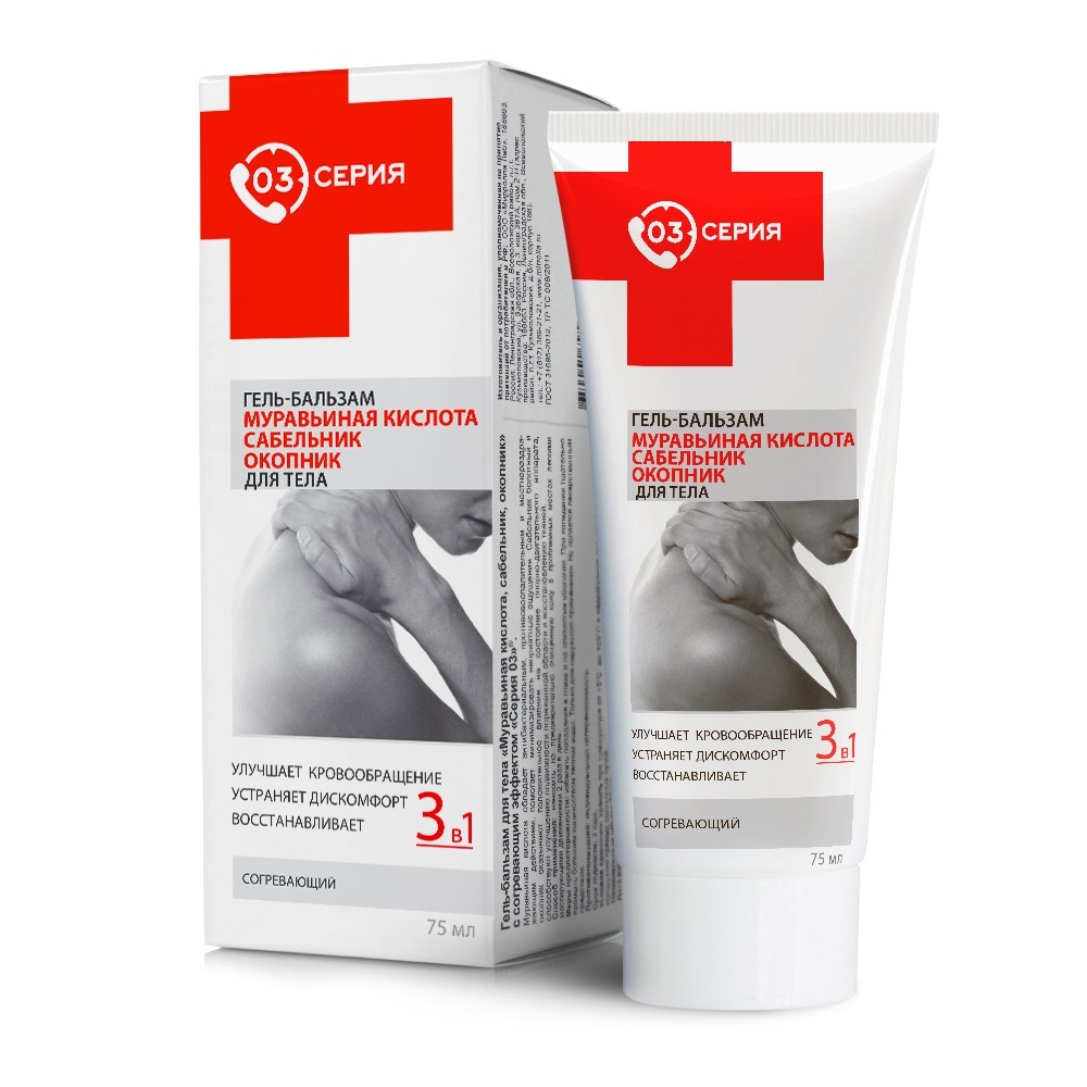Серия 03 Гель-бальзам для тела "Муравьиная кислота, Сабельник, Окопник" согревающий, 75 млВопросы по товару