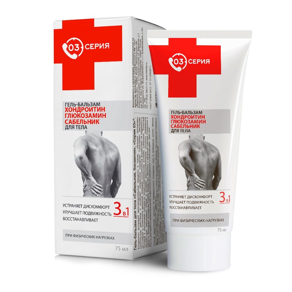 Серия 03 Гель-бальзам для тела "Глюкозамин, Хондроитин, Сабельник", 75 млВопросы по товару