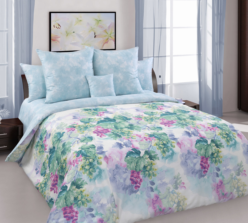 Из ткани шириной 1.50 м лучше всего шить односпальный или полуторный комплект — это одно и то же. Ширина одеяла — 1.50 м — это и есть наша ширина ткани и для пододеяльника нужно взять две длинны одеяла + припуск на шов (2.20 м х 2 = 4.40 м + 2см = 4.42 м). Простынь — это одна длина кровати (2.10 -2.20 м) + соответствующий расчет на наволочки по размеру подушек.