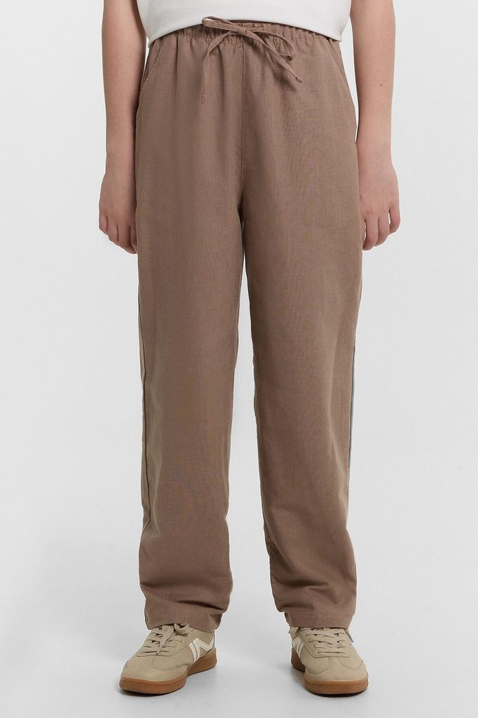 ID товара: 1099192 Состав: 56% Лен; 44% Хлопок Сезон: Весна/Лето Длина: Полная Фасон: Прямые Вид застежки: Без застежки Посадка: Средняя Тип карманов: С отрезным бочком Декоративные элементы: Без элем... Показать описаниеентов Утеплитель: Без утепления Основная ткань: Лен Уход: Деликатная стирка при 30 градусах Модель брюк: Чинос Особенности модели: Нет Фактура материала: Тканое полотно Страна бренда: Беларусь Страна производства: Беларусь Брюки для мальчиков из ткани. Брюки длинные с классической линией талии. Силуэт прямой, брюки заужены немного к низу. Пояс цельнокроеный. Верхний срез брюк застрочен с эластичной тесьмой. В боковых швах карманы "хулиганы". На внешней стороне пояса пробиты петли, и втянут шнур из основного полотна. Низ брюк обработан швом в подгибку.