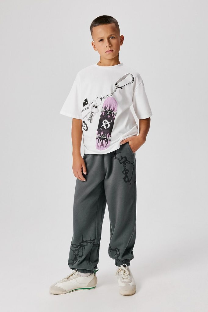 ID товара: 1105580 Акции: -2%, до 11.11.2025 Состав: 100% Хлопок Сезон: Весна/Лето Длина: Полная Фасон: Свободный Вид застежки: Без застежки Посадка: Средняя Рисунок: Надпись Тип карманов: В шве Декор... Показать описаниеативные элементы: Карман Утеплитель: Без утепления Основная ткань: Хлопок Стиль: Спортивный Уход: Деликатная стирка при 30 градусах Модель брюк: Джоггеры Особенности модели: Нет Фактура материала: Футер Страна бренда: Беларусь Страна производства: Беларусь Представляем вашему вниманию комфортные и стильные брюки для мальчиков, выполненные из футера без подчеса. В составе изделия - высококачественный хлопок. Имеют среднюю посадку и пояс с эластичной тесьмой, который гарантирует комфорт. Материал изделия мягкий, приятный на ощупь, обладает отличной воздухопроницаемостью и сохраняет тепло. По боках расположены накладные карманы, придающие модели практичность. Эти брюки для мальчиков идеально подойдут как для повседневного использования в течение учебного дня, так и для отдыха вне школы. Они сочетаются с толстовками, поло, пуловерами и другими вещами. Рекомендуем!