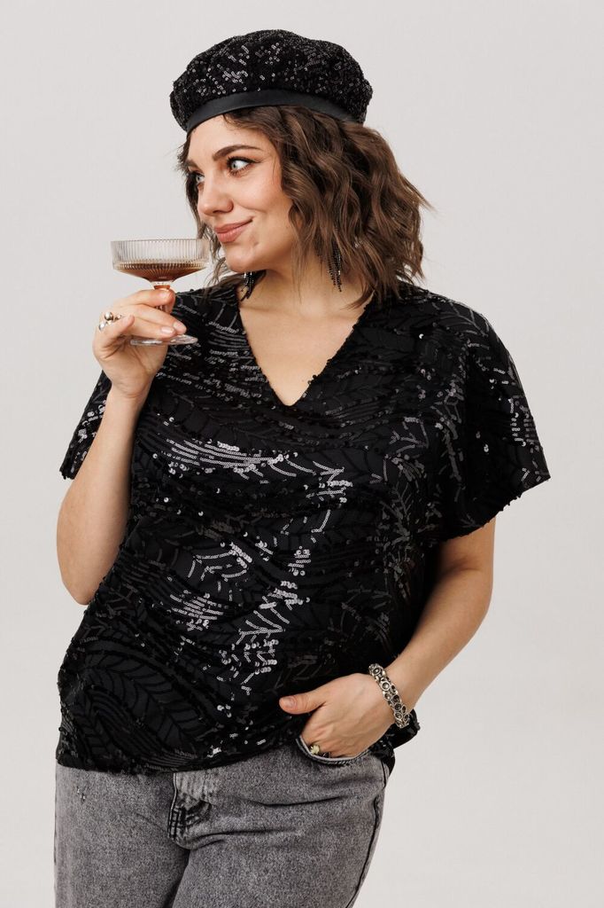 Состав: Вискоза-28%; ПЭ-68%; Эластан-4%; Эта блуза от Анелли, в которой рождается праздник. Её силуэт — лёгкое облако, струящееся в свободе кроя. Цельновыкроенный рукав, мягко раскрывающий запястье, и... Показать описание круглый вырез лишь подчёркивают изящную игру фактур. Основная часть, воздушная и прозрачная, как дымка, соткана из тончайшей сетки, сквозь которую мерцает кружевная тайна низа. Но главная магия - спереди: россыпь пайеток, застывших, как тысячи крошечных звёзд. Они не кричат, а шепчут о вечере, где зажигаются огни, или просто превращают серый день в момент сияния. В этом блузоне не просто одеваются - в нем танцуют, ловят взгляды и чувствуют, как обыденность отступает перед его летящим, фигурным подолом. Это наряд в цвете «черный авантюрин», в котором удобно быть самой яркой. Замеры: Размер 54: ОГ-124; ОТ-129; ОБ-134; ОП-50; ДИ спинки - 73; ДР- 58; ДИ переда- 79; Размер 56: ОГ-128; ОТ-133; ОБ-138; ОП-52; ДИ спинки - 75; ДР- 59; ДИ переда- 82; Размер 58: ОГ-133; ОТ-138; ОБ-142; ОП-54; ДИ спинки - 76; ДР- 59; ДИ переда- 83; Размер 60: ОГ-138; ОТ-142; ОБ-146; ОП-56; ДИ спинки - 76; ДР- 59; ДИ переда- 84; Размер 62: ОГ-143; ОТ-147; ОБ-150; ОП-56; ДИ спинки - 78; ДР- 59; ДИ переда- 84; Размер 64: ОГ-148; ОТ-152; ОБ-156; ОП-58; ДИ спинки - 79; ДР- 59; ДИ переда- 85;
