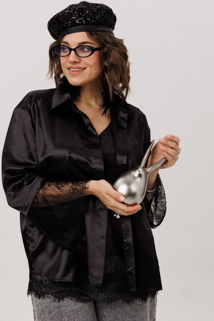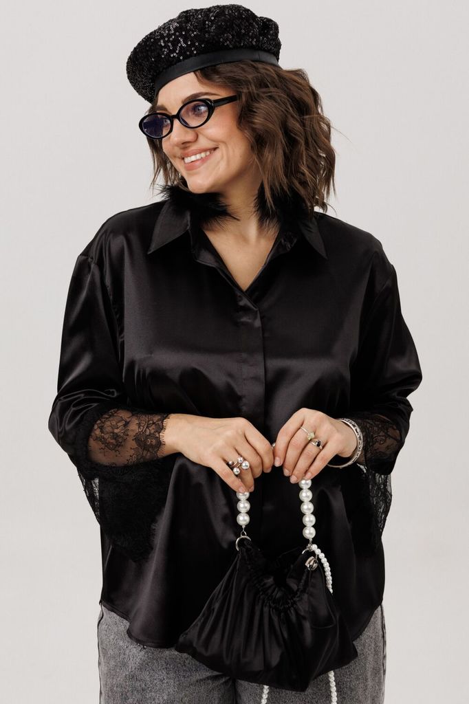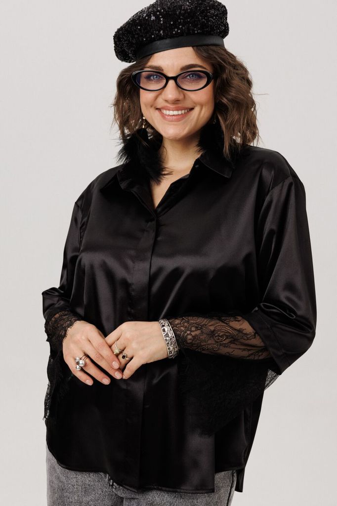 Состав: Вискоза-65%; ПЭ-32%; Спандекс-3%; Роскошная рубашка от Анелли с фигурным низом. Мягкое спущенное плечо задаёт плавный ритм всему силуэту, а отложной воротник и идеально скрытая застёжка на пуг... Показать описаниеовицах говорят о внимании к деталям. Но главная поэзия заключена в рукавах. Длинные, втачные, они раскрываются нежным веером французского кружева у запястья - воздушный штрих, превращающий самый обычный день в моменты тихой роскоши. Это деталь-намёк, тонкий шёпот изысканности, придающий образу неуловимый шарм и глубину. Её универсальность - в этом же изяществе. Она станет сердцем повседневного образа с джинсами и лаконичным топом, или элегантной основой под строгие брюки и каблуки для вечера. А в комплекте с жакетом её кружевные манжеты превращаются в изысканный акцент, бережно обрамляющий запястье и придающий законченность самому сдержанному ансамблю. На модели берет 1780 и топ 1664. Замеры: Размер 42: ОГ-104; ОБ-108; ОП-36; ДИ-69; ДР-56; ШП-16; Размер 44: ОГ-108; ОБ-112; ОП-36; ДИ-69; ДР-56; ШП-16.5; Размер 46: ОГ-112; ОБ-116; ОП-38; ДИ-69; ДР-56; ШП-16.5; Размер 48: ОГ-116; ОБ-120; ОП-38; ДИ-69; ДР-56; ШП-16.5; Размер 50: ОГ-118; ОБ-124; ОП-40; ДИ-69; ДР-56; ШП-17; Размер 52: ОГ-124; ОБ-128; ОП-42; ДИ-70; ДР-56; ШП-17; Размер 54: ОГ-128; ОБ-132; ОП-44; ДИ-70; ДР-55; ШП-17; Размер 56: ОГ-132; ОБ-136; ОП-44; ДИ-71; ДР-55; ШП-18; Размер 58: ОГ-136; ОБ-140; ОП-46; ДИ-71; ДР-55; ШП-18; Размер 60: ОГ-140; ОБ-144; ОП-46; ДИ-71; ДР-55; ШП-18;