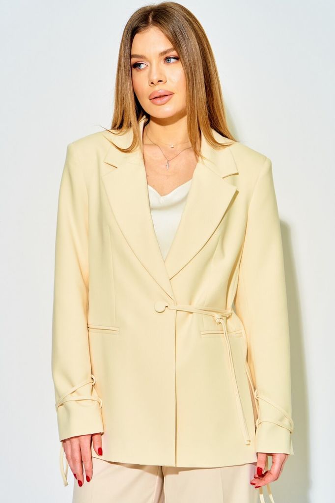 Состав: Вискоза-20%; ПЭ-70%; Эластан-2%; Стильный жакет от LAIKONY свободного силуэта на подкладке. Застежка центральная на петли и пуговицы. Воротник отложной пиджачного типа. Детали переда с отрезны... Показать описаниеми бочками, горизонтально расположенными боковыми прорезными карманами с рамками и клапанами и талиевыми вытачками. Спинка жакета с рельефными швами, плечевыми вытачками и средним швом, который заканчивается шлицей. Рукава втачные двухшовные. Жакет на подкладке. Декор может отличаться от представленного на фотографии. Съемный пояс в комплекте. Длина изделия по спинке 74 см, длина рукава 61,5 см. Жакет вы можете дополнить топом L-037 (на фото). Наш модный жакет составит стильный образ как для офиса, так и для вечеринки с друзьями.