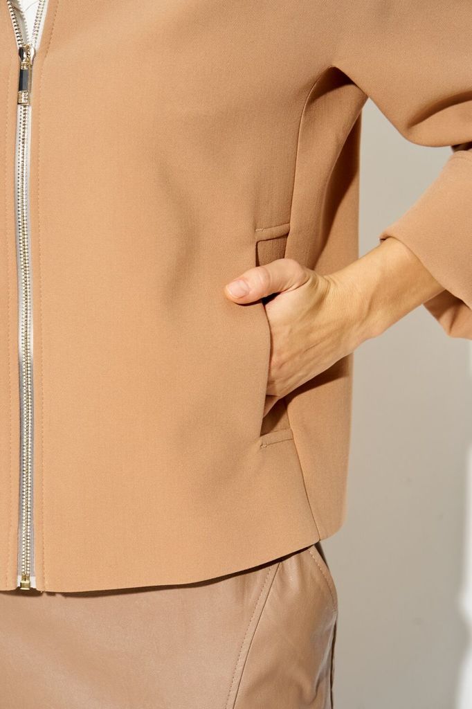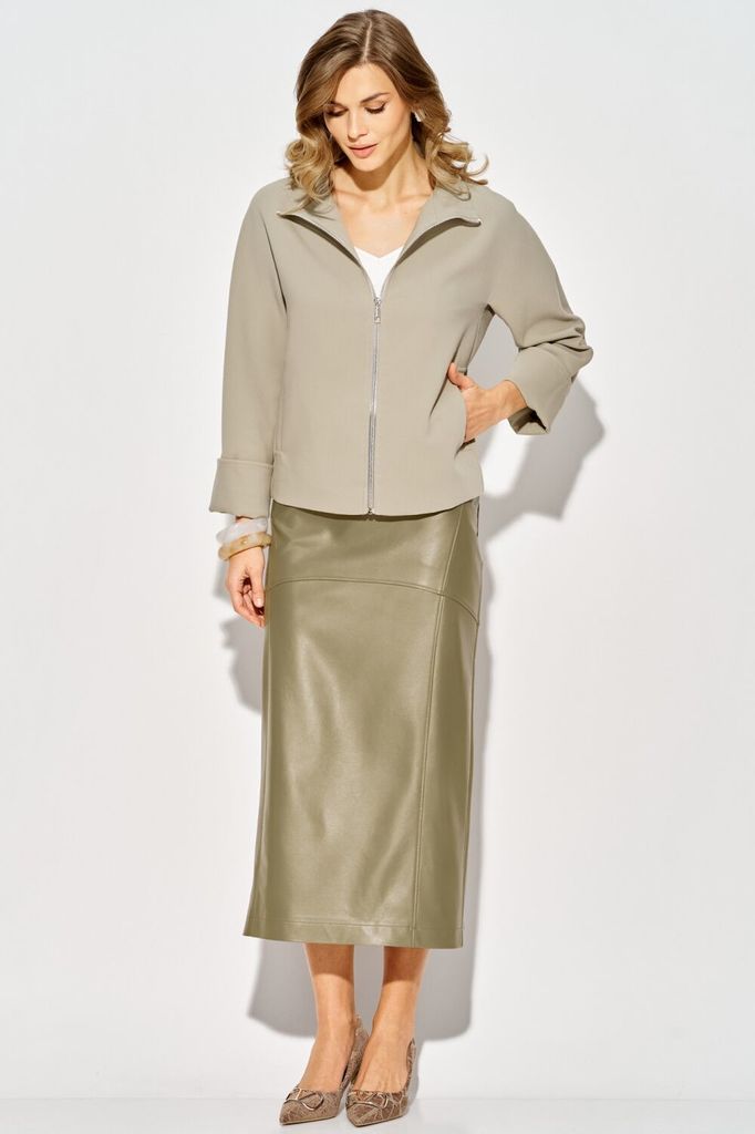 Состав: Вискоза-20%; ПЭ-76%; Спандекс-4%; Жакет LAIKONY свободного силуэта на подкладке длиной до линии бедер. Застежка центральная на металлическую тесьму-молнию. Вырез горловины «под горло», с втачн... Показать описаниеой стойкой. Детали переда с отрезными бочками, в швах обработаны карманы. Спинка жакета со средним швом. Рукава цельнокроеные длиной 3/4, низ обработан обтачкой. Рукава с незакрепленным отворотом, который, при необходимости, можно отвернуть. Жакет на подкладке. Жакет выполнен из костюмной ткани. Декор может отличаться от представленного на фотографии. Длина изделия по спинке 55-56,5 см в зависимости от размера, длина рукава 70-70,5 см в отвернутом виде. Наш жакет вы можете носить весной вместо куртки. Вместе с юбкой из экокожи L-924 (на фото) или брюками L-942-2 составит стильный образ как для офиса, так и повседневного использования.