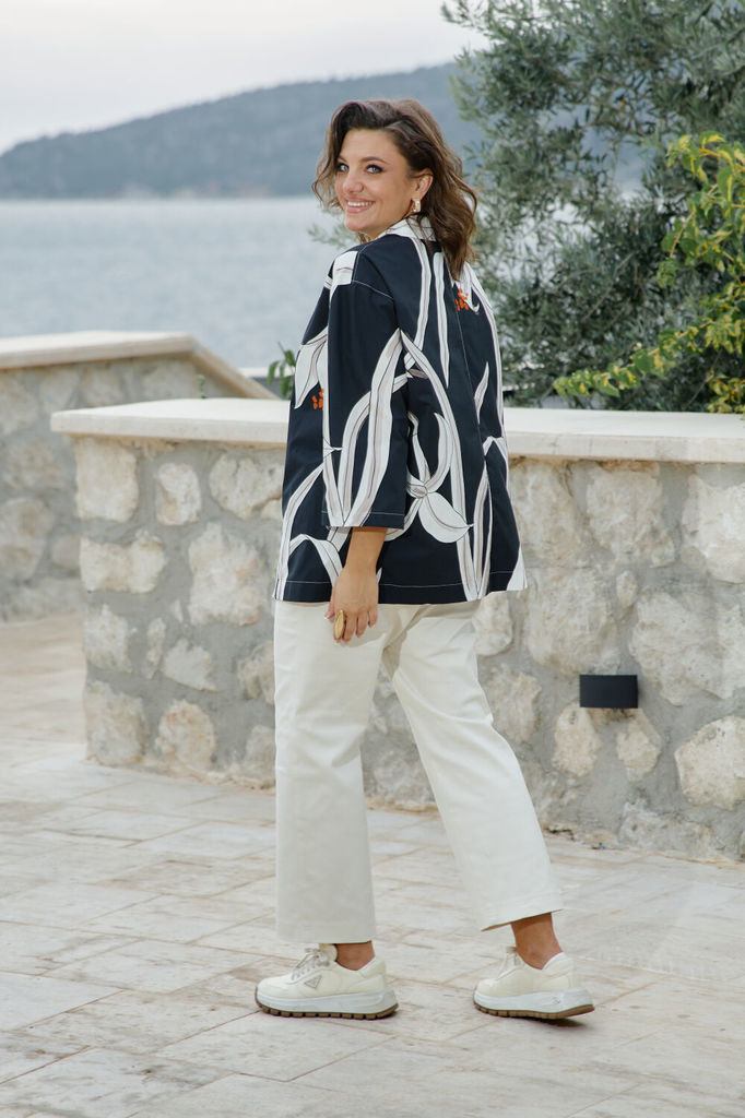 Состав: Хлопок-100%; Модель отшивается под заказ. Срок пошива от 3 недель. Этот жакет — история о контрастах. Тёмный, глубокий фон и лёгкий, светлый рисунок. Скрывающий силуэт покрой и откровенная, пр... Показать описаниеитягивающая взгляд красота принта-идеальный вариант для тех, кто любит привлекать внимание, он сочетает в себе летнюю расслабленность и деловую элегантность. Данный жакет станет отличным вариантом для повседневных образов, а также для работы в офисе. Прямой крой и сдержанный крупный принт помогут скрыть все несовершенства фигуры и создать идеальный силуэт. Жакет прямой, свободного силуэта, с центральной застёжкой на петлю-пуговицу, с отложными лацканами. Карманы - в боковых швах. Спинка жакета со средним швом. Рукав со спущенной линией плеча, длиной 3/4. Жакет без подкладки. Длина спинки жакета 71 см. Длина рукава жакета 45 см. Жакет 52 54 56 58 60 62 обхват груди 120 124 128 132 136 140 обхват бедер 126 130 134 138 142 146 ширина рукава вверху 44 46 48 48 50 52