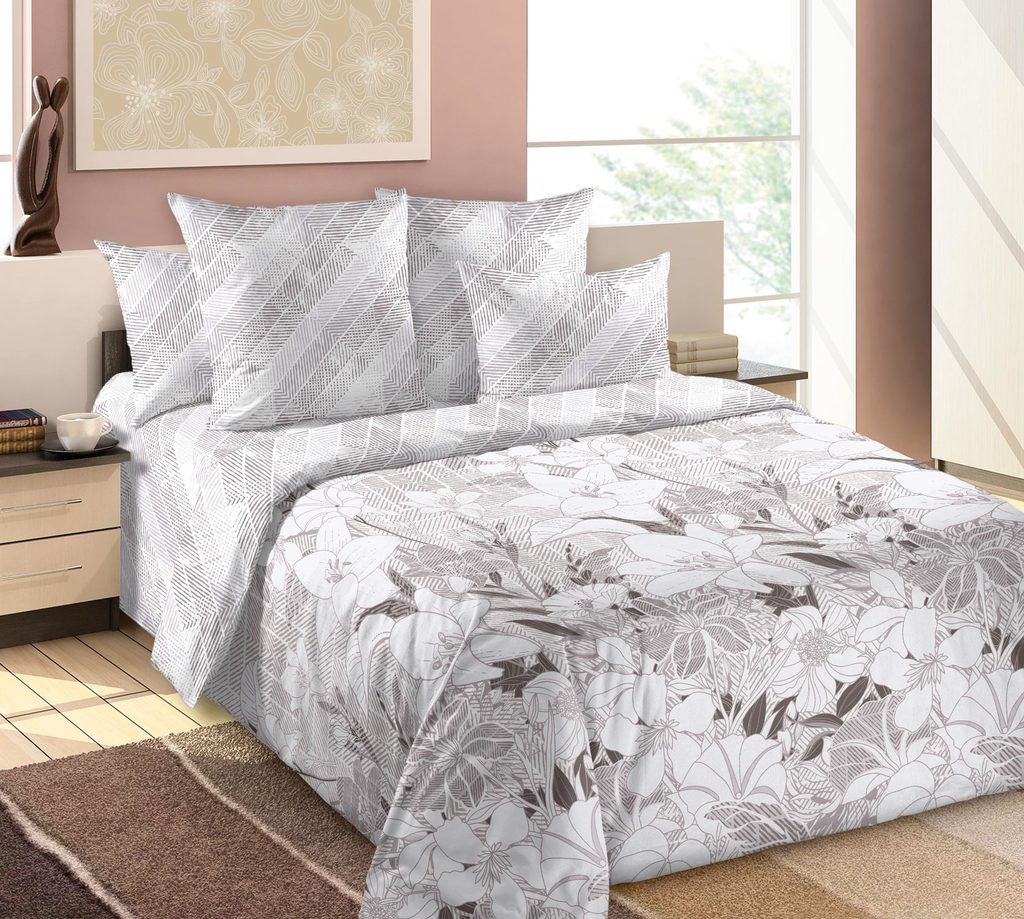 При ширине ткани 0.80 м лучше всего сшить полуторный или односпальный комплект. В этом случае простынь и пододеяльник будут стачные по середине. На простынь необходимо взять две длины (2.20 м х 2 = 4.40 м) и стачать их. На пододеяльник соответственно в два раза больше — 8.40 + припуск на швы 5 см = 8.45 м, но так как ширина одеяла на полуторный или односпальный комплект 1.50 м, а у нас получается ширина на 1.60м, то можно немного срезать по бокам, примерно по 2-3 см. На наволочки по размеру подушек х на 2 + на подгибку 20-25 см."