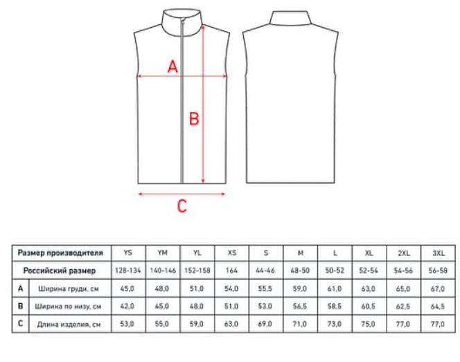 Здравствуйте. Замеры по данному изделию даны на сайте поставщика. https://prime-sport.ru/catalog/odezhda-optom/palto-i-zhilety-uteplennye-optom/1980705/ Размерная сетка подкреплена к товару.