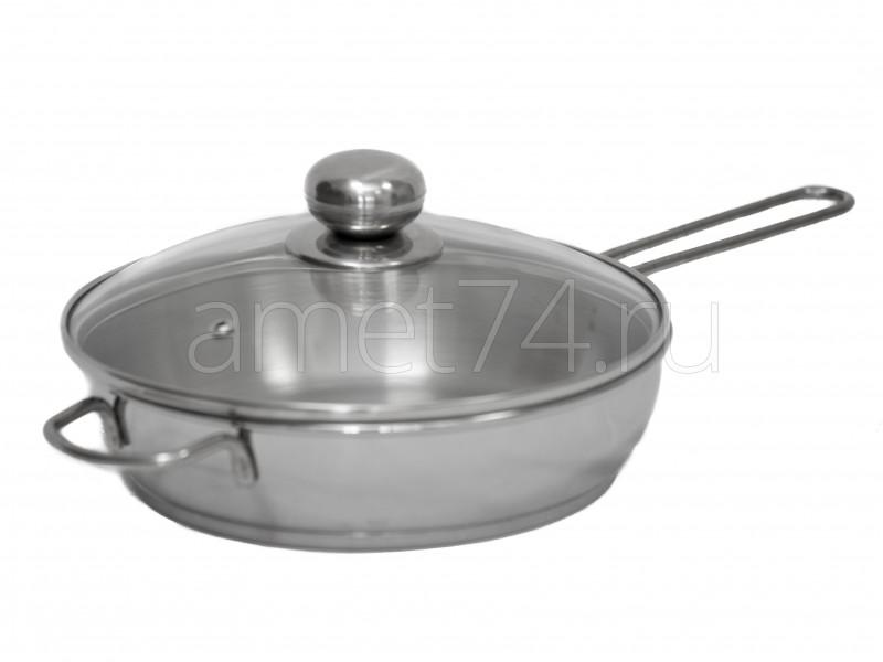 Сковорода 1,5 л с ТРС-3 стеклянная крышка с прут.ручками (220 мм) арт.1с757 (г.Аша)