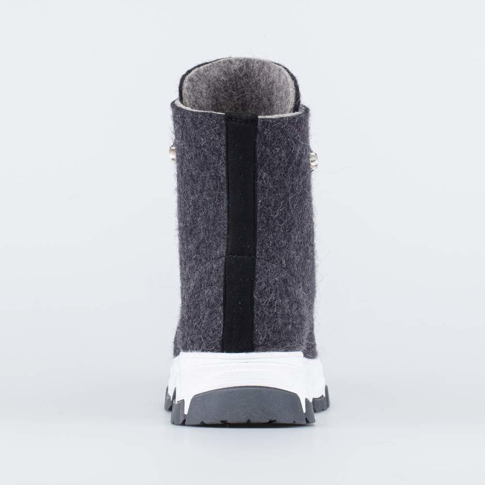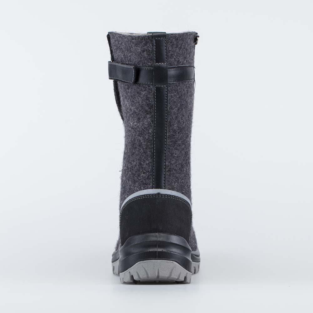 Валенки производятся из экологически чистой 100% натуральной овечьей шерсти. Обувь из шерсти «дышит», обладает массажным воздействием, способствует улучшению циркуляции крови. Валенки имеют анатомическую внутреннюю форму, соответствующую стопе, и ноге не надо приформовывать окружающее пространство под себя (как это происходит в обычных валенках). Войлок толщиной 5 мм обладает прекрасными теплозащитными свойствами, не требуя дополнительной меховой подкладки. Подошва литьевого метода крепления из специального зимнего полиуретана с антискользящим протектором. Пяточная и носочная части защищены натуральной кожей с полиуретановым покрытием. Четкие линии, минимум декора. Удобная застежка-молния позволяет легко обувать и снимать валенки.