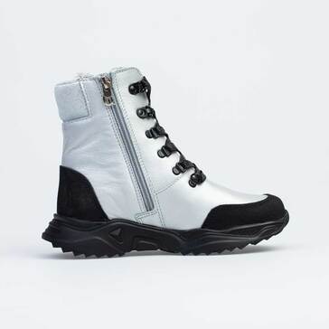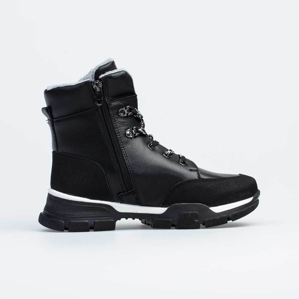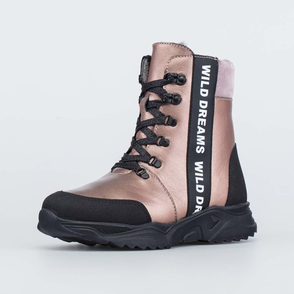 Ботинки для мальчика выполнены из натуральной кожи. -Материал верха натуральная кожа - воздухопроницаемый, износоустойчивый, влагоотталкивающий и ветронепродуваемый. -Материал подкладки натуральный мех, создаст комфорт при носке за счёт формования внутреннего пространства под индивидуальные особенности каждой ножки. -Ремешок с застёжкой велькро в верхней части позволит легко обувать и снимать ботинки, при этом «полноту» можно отрегулировать с помощью шнурков с фиксатором. -Мягкий манжет создает комфорт при ходьбе. -Подошва модели - легкая и гибкая, с отличной амортизацией и хорошей теплоизоляцией.