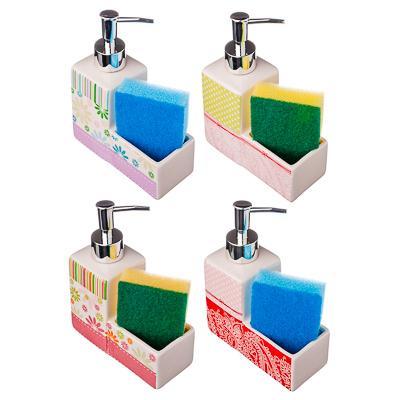 VETTA Диспенсер для моющего средства с губкой, керамика, 18х10 см, 320  мл, 4 дизайна, D1